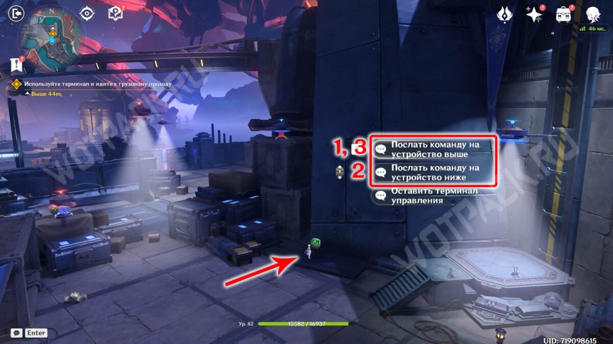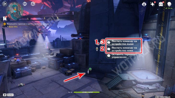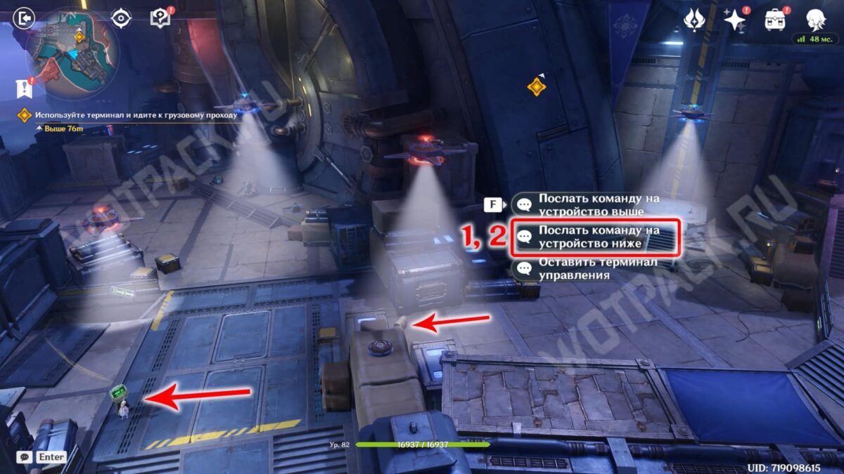 - Поднимитесь на платформу, перезагрузив по пути седьмого. Напротив подъемника включите восьмое и девятое изобретения.