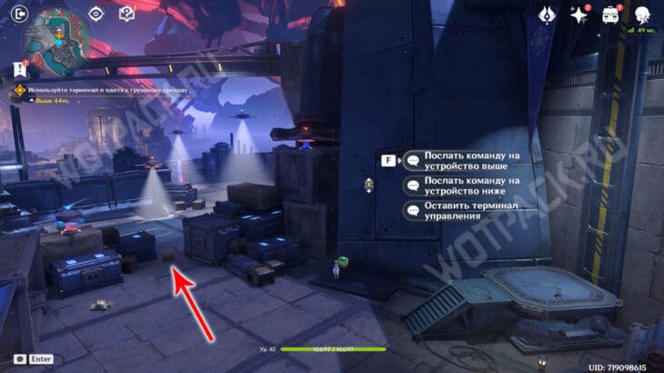 Подойдите к первому терминалу управления и дважды выберете «Послать команду на устройство ниже».