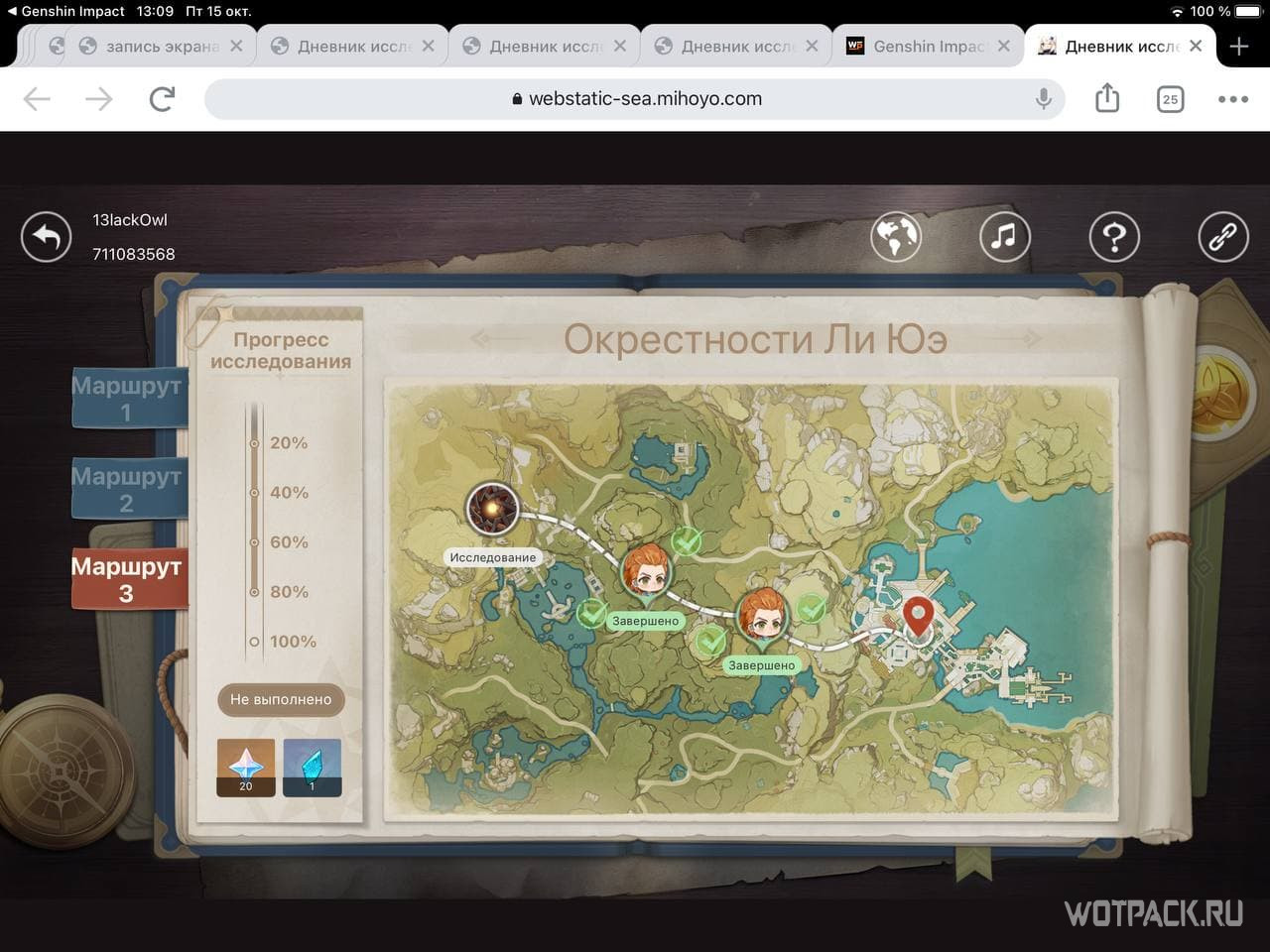 За полное исследование всех маршрутов можно получить: