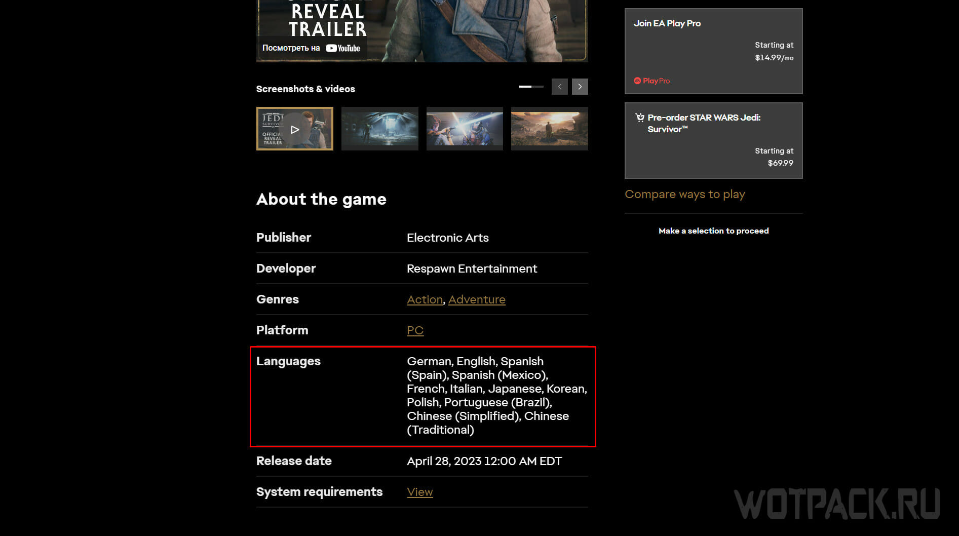 Надеемся, наше руководство помогло понять, будет ли русская локализация в Star Wars Jedi: Survivor и станет ли она доступна после релиза. Делитесь в комментариях мыслями о действиях EA Games и планируете ли ждать перевод от энтуизастов.