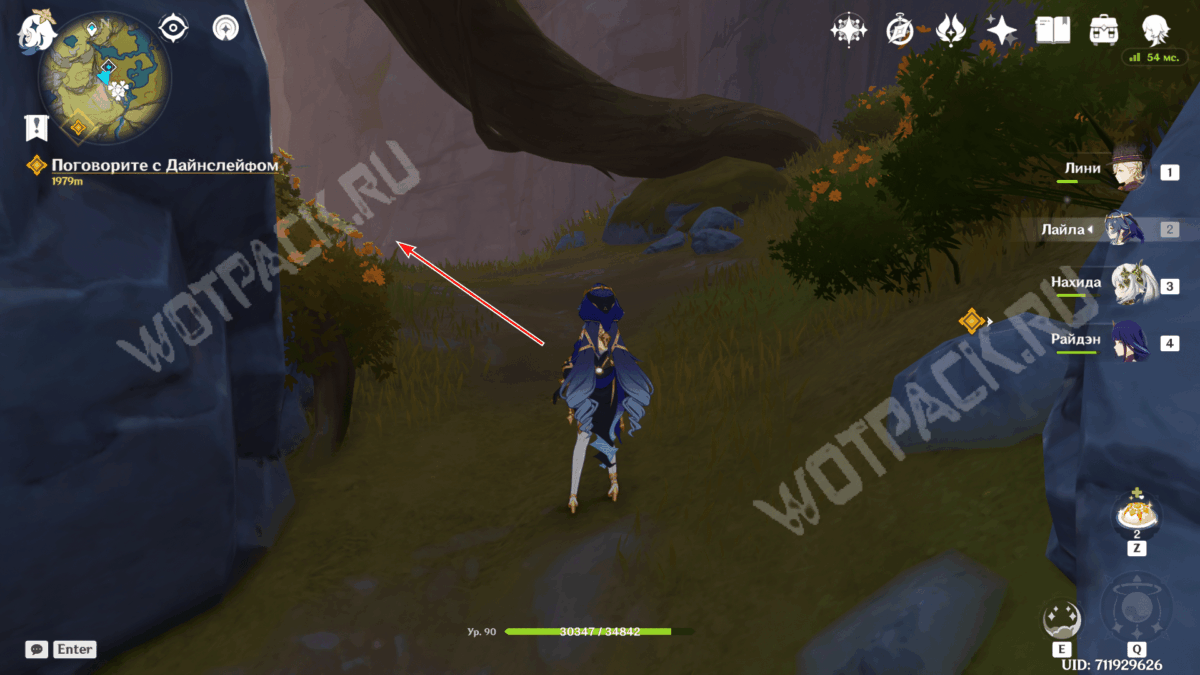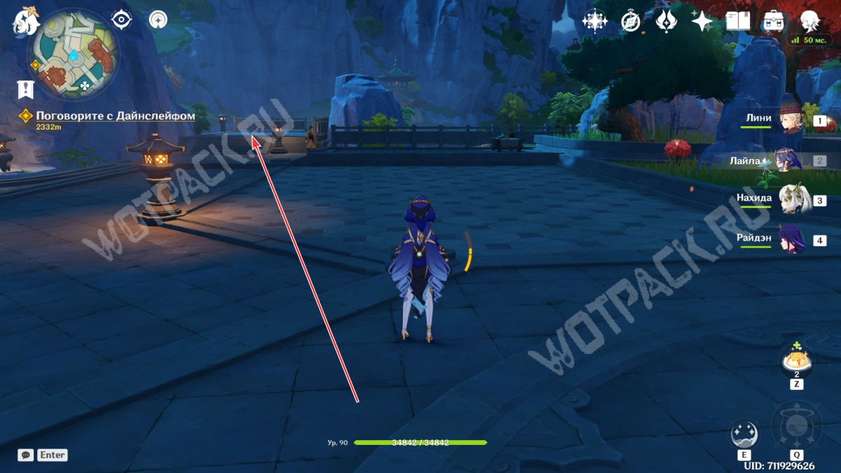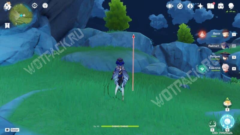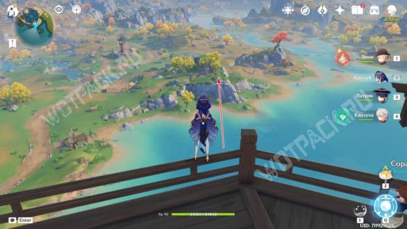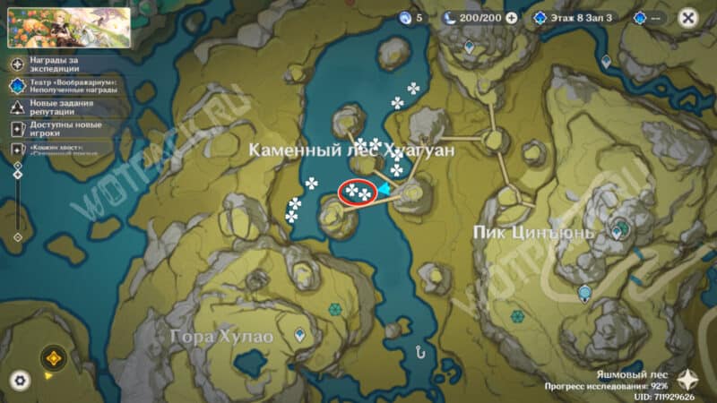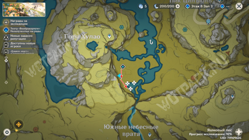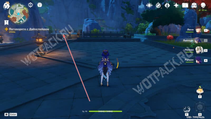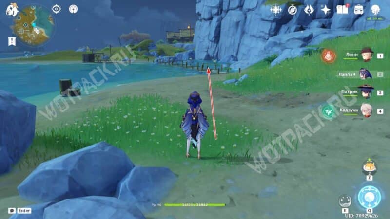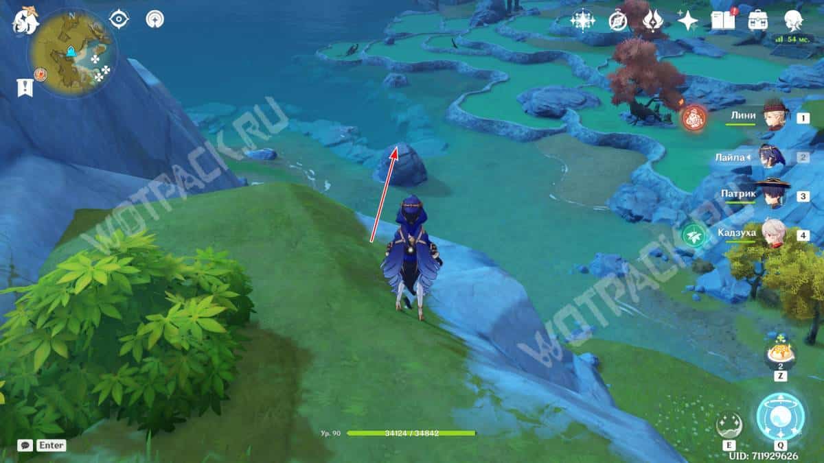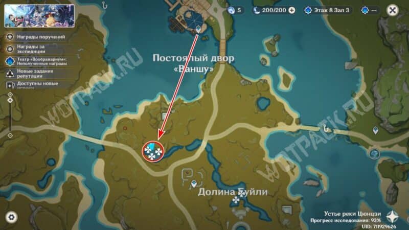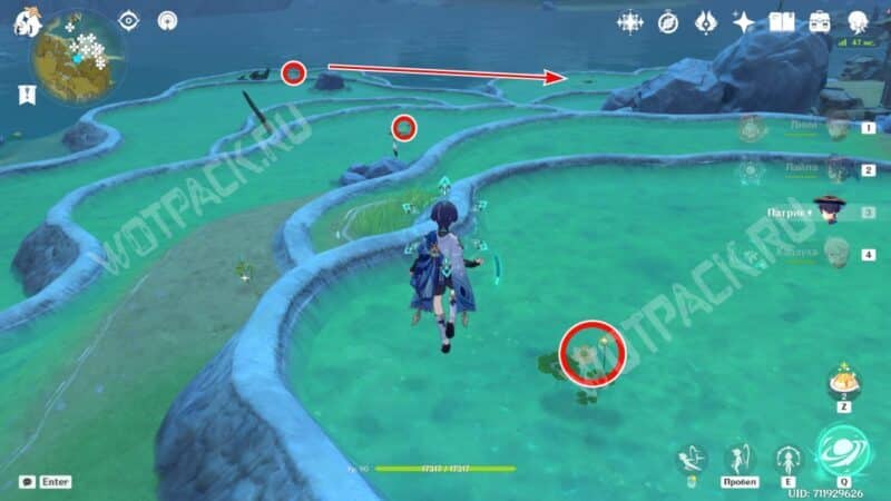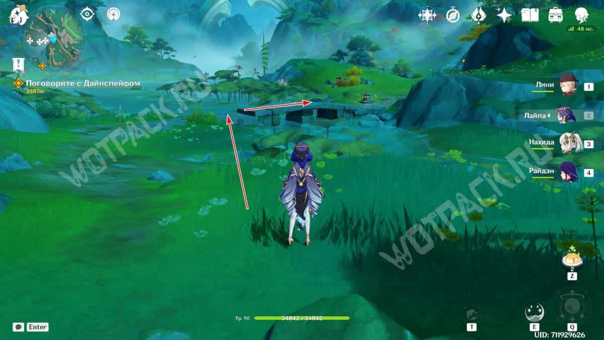 Потом телепортируйтесь на «Постоялый двор Ваншу» и летите на юго-запад от него. От старых руин идите вперед, к вышке хиличурлов.