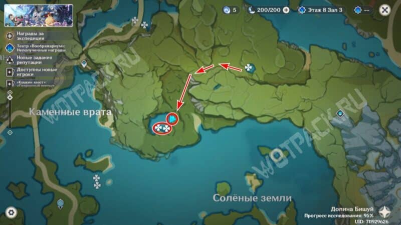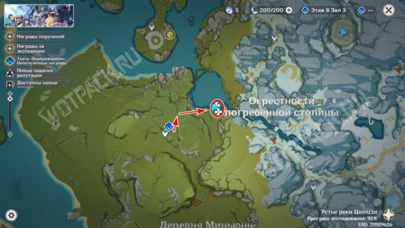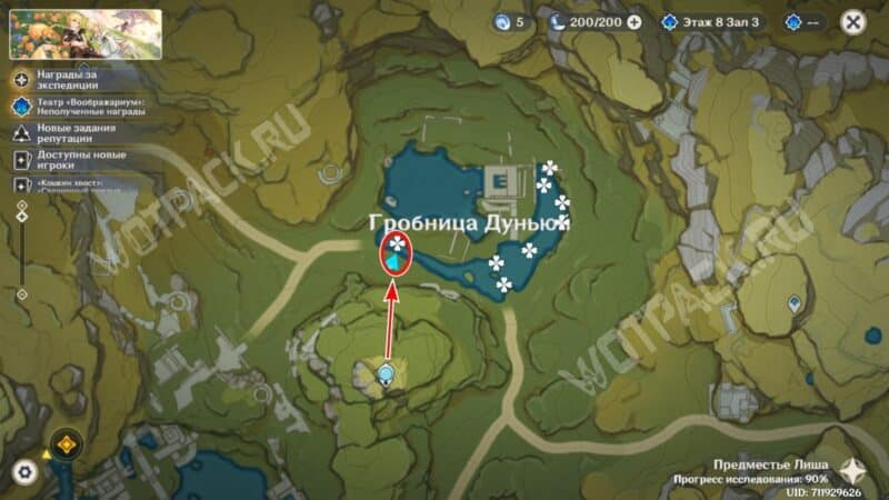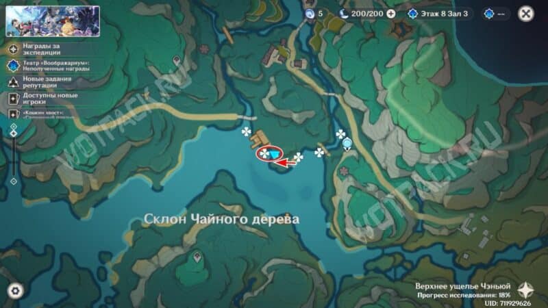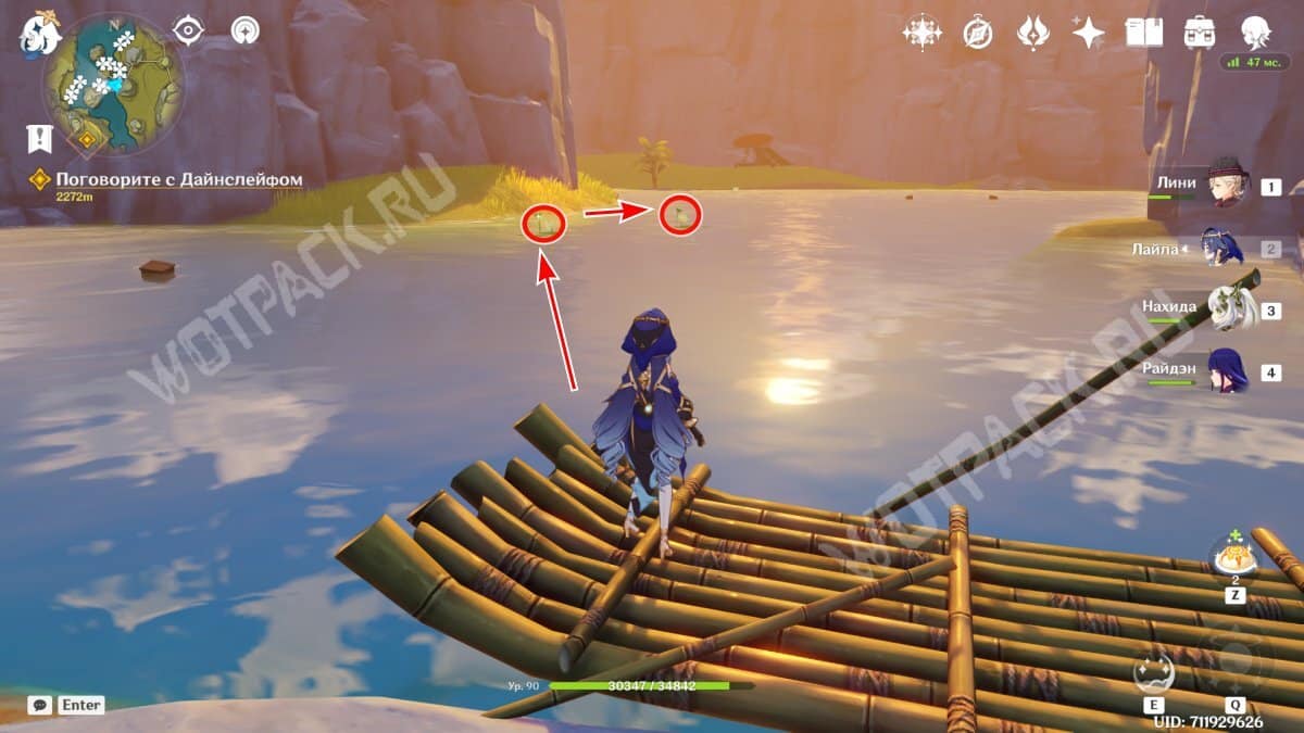 Внизу будет Усыпальницы глубин и лагерь хиличурлов, которые не отдадут два лотоса без боя.