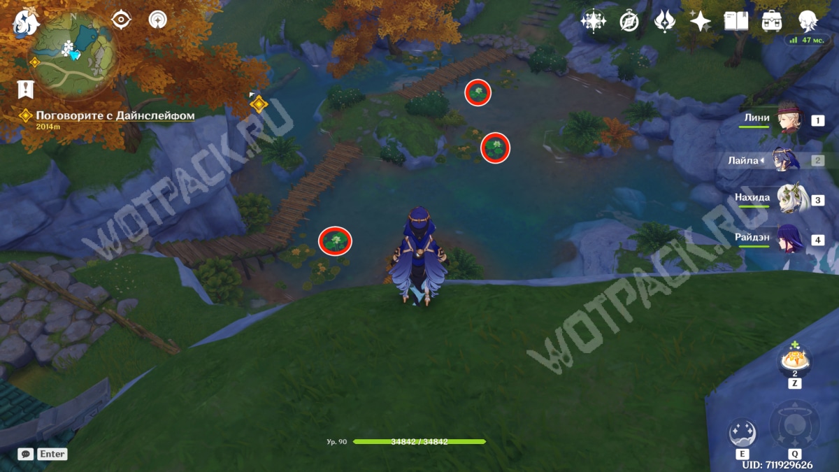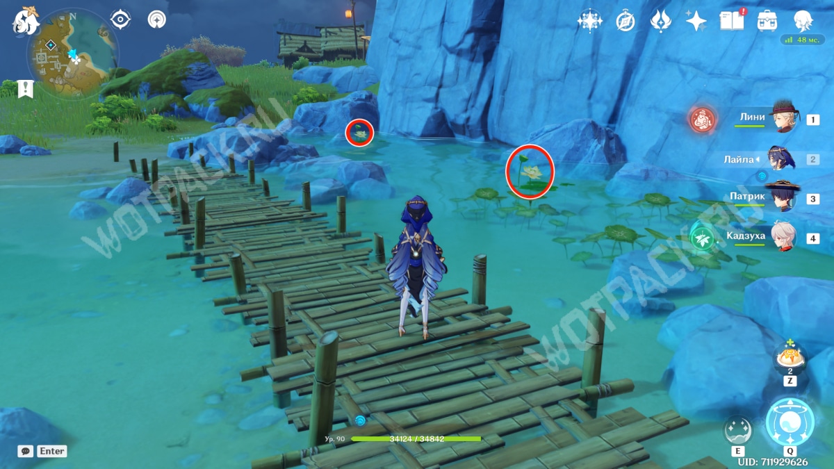 К сожалению, ни один персонаж не отмечает коробочки лотоса на карте. При фарме рекомендуются герои, которые облегчают путь по гористой местности и водной глади.