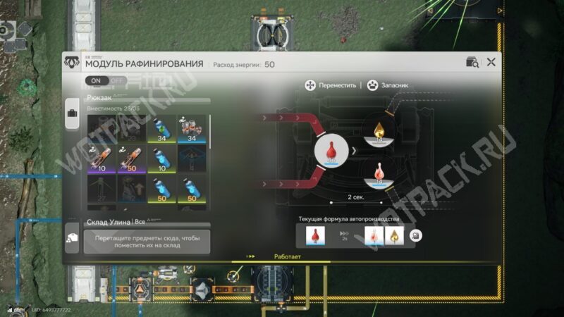 Инертную жидкость сразу направьте на ликвидацию через модуль очистки, иначе она заполнит буфер строения и производство остановится. Основное же вещество необходимо направить в небесную кузницу.