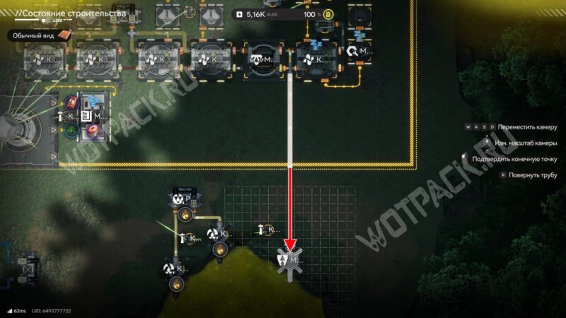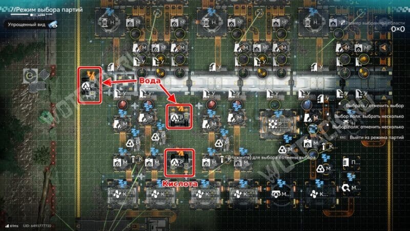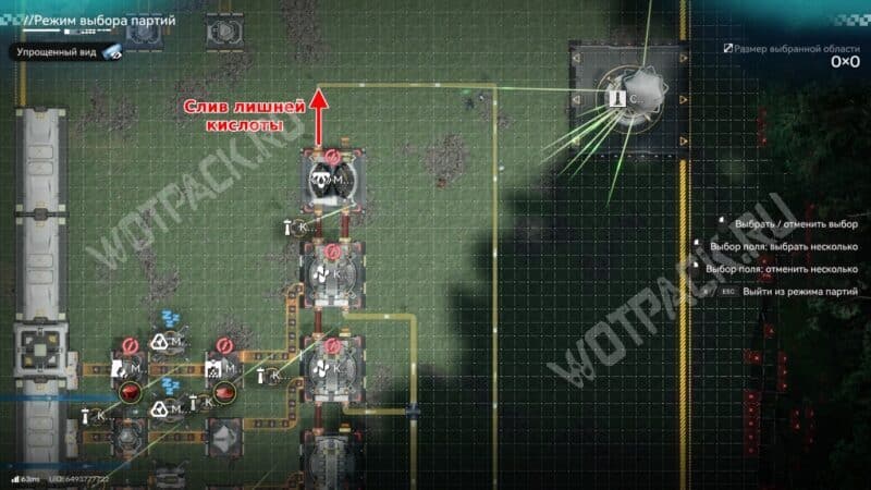 Также важно организовать слив лишней кислоты. Подключите свободный конец трубы от южной границы к модулю подачи жидкости на берегу кислотного озера.
