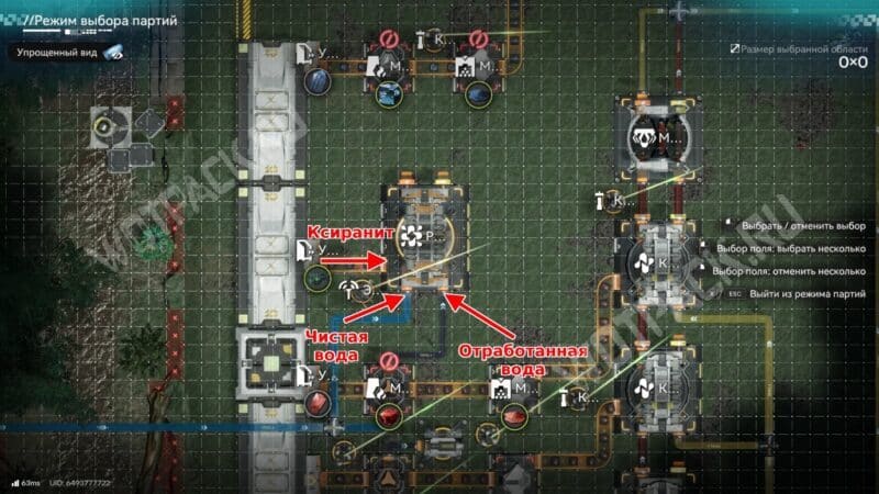В первую очередь нужно очистить куприевую руду, поэтому выведите её со склада и направьте в очистители. Не забудьте подключить к ним чистую воду, а порты для вывода жидкости соедините с модулями очистки воды.