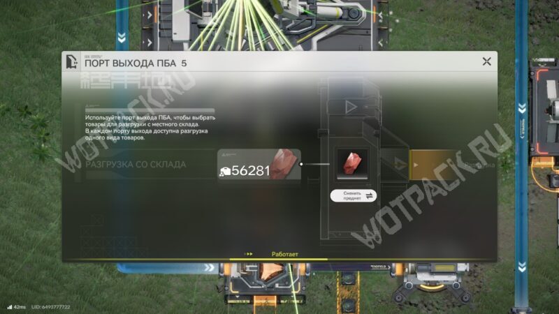После размещения всех гидродобывающих установок возвращайтесь в область АПК и выведите со склада красный минерал по ленте в очиститель.