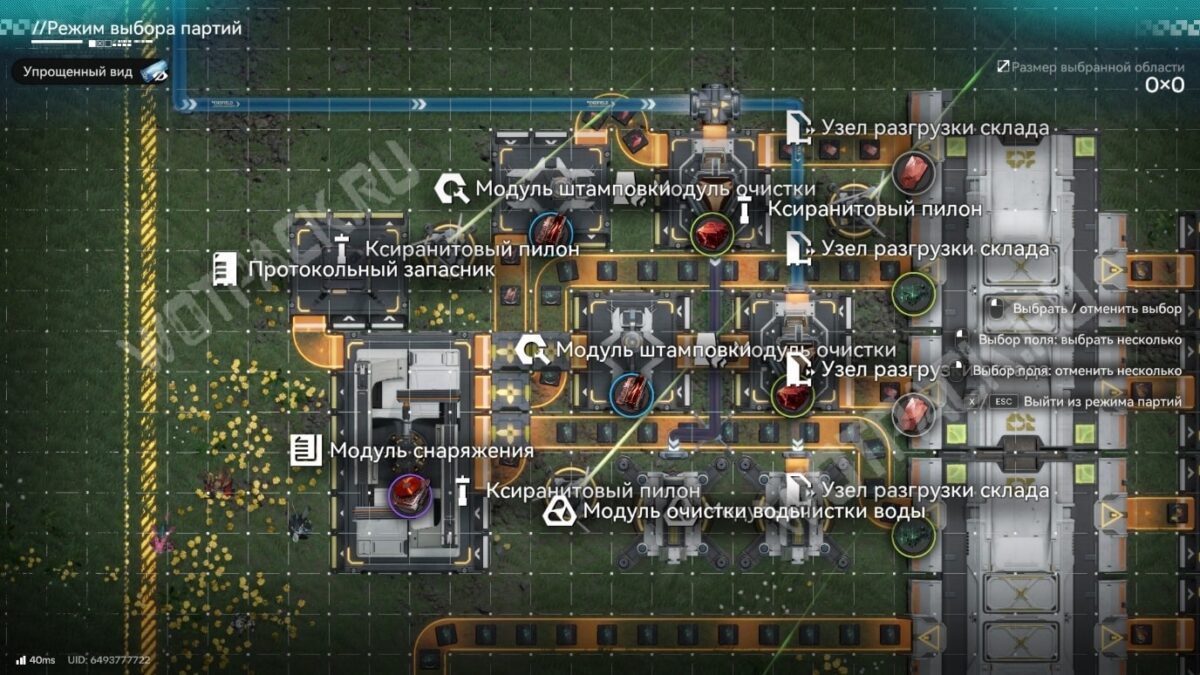 При построении цепочки важно определить, что происходит с ксиранитом на производстве. Если со всех кузниц он поступает в запасник, то проще вывести его от порта выхода ПБА или с узла разгрузки склада. В ином случае стоит протянуть ленту с зелёным порошком прямо от ближайшей небесной кузницы.