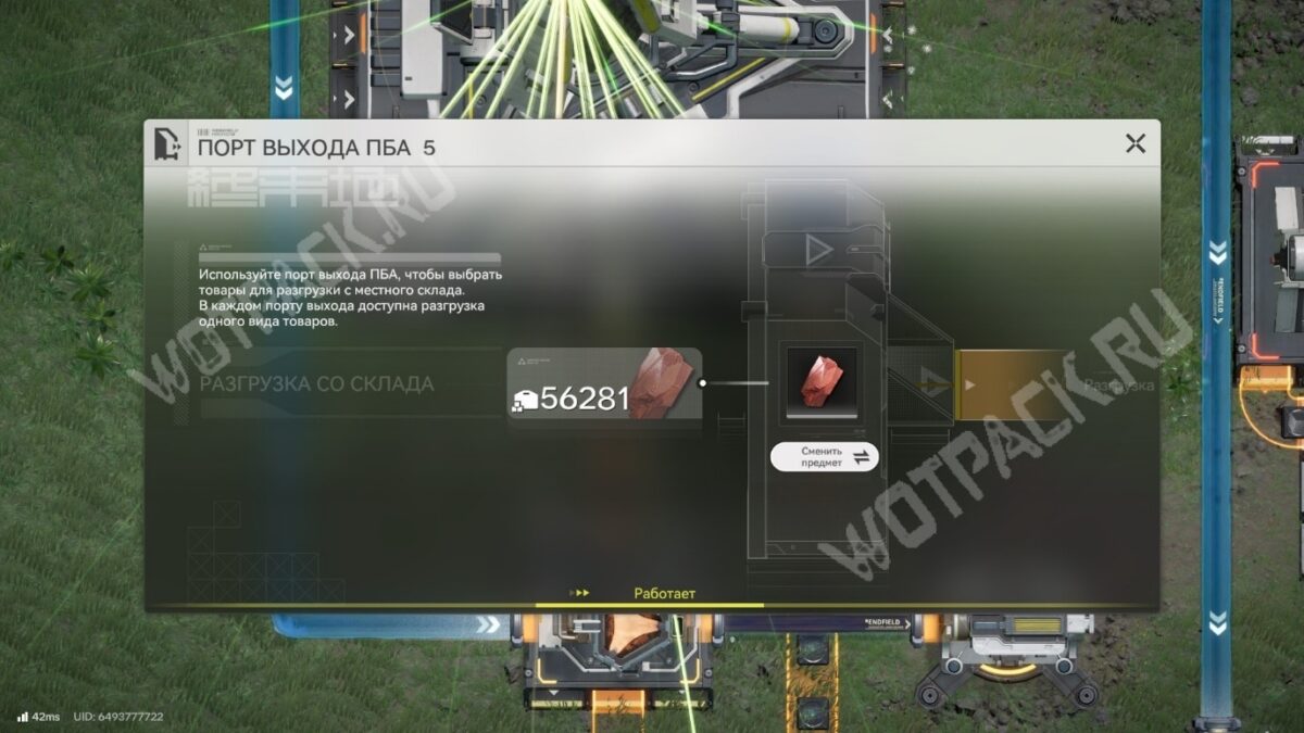 После размещения всех гидродобывающих установок возвращайтесь в область АПК и выведите со склада красный минерал по ленте в очиститель.