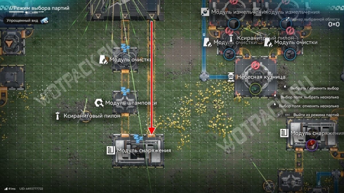 Разместите модуль снаряжения и подключите линию ксиранита