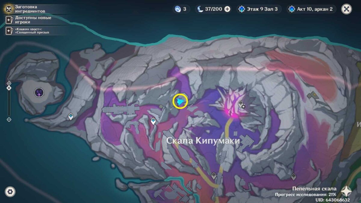 Отправляйтесь к точке телепортации на севере Скалы Кипумаки и двигайтесь на северо-запад. Среди руин, на небольшой возвышенности, заметите нужную загадку с сокровищами.