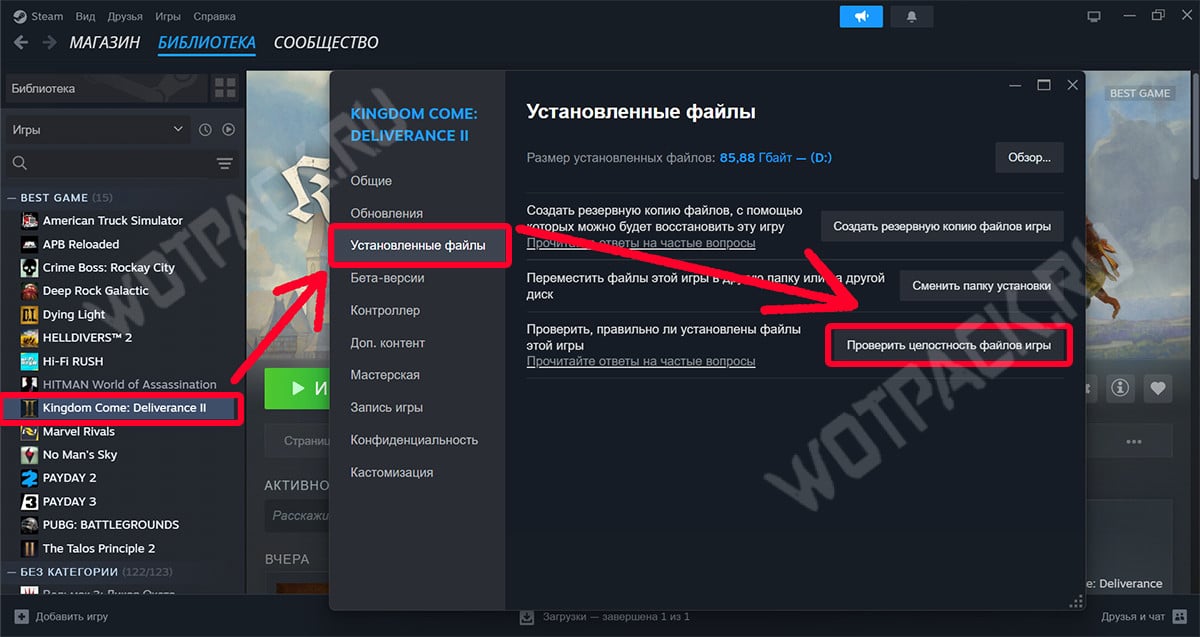 Стим автоматически проанализирует папки на наличие поврежденных данных и заменит необходимые.