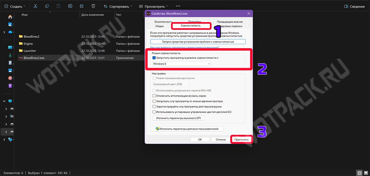 - Поставьте галочку на «Запустить программу в режиме совместимости».