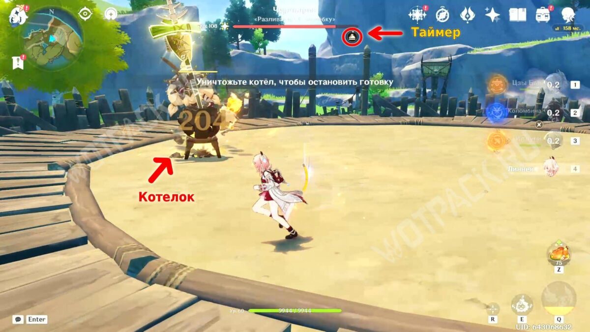 В третьем задании ломайте каждый призванный котёл до тех пор, пока хиличурл-повар не будет повержен. Сильная команда может разобраться с ним после первого котла. Убивать его именно во время работы устройства не нужно.