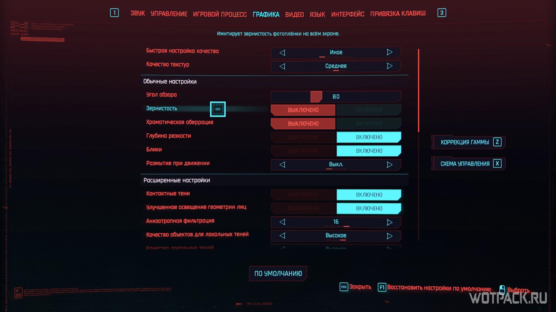 - Выключите в настройках игры (раздел графика) зернистость и оставьте игровой HDR отключенным.
