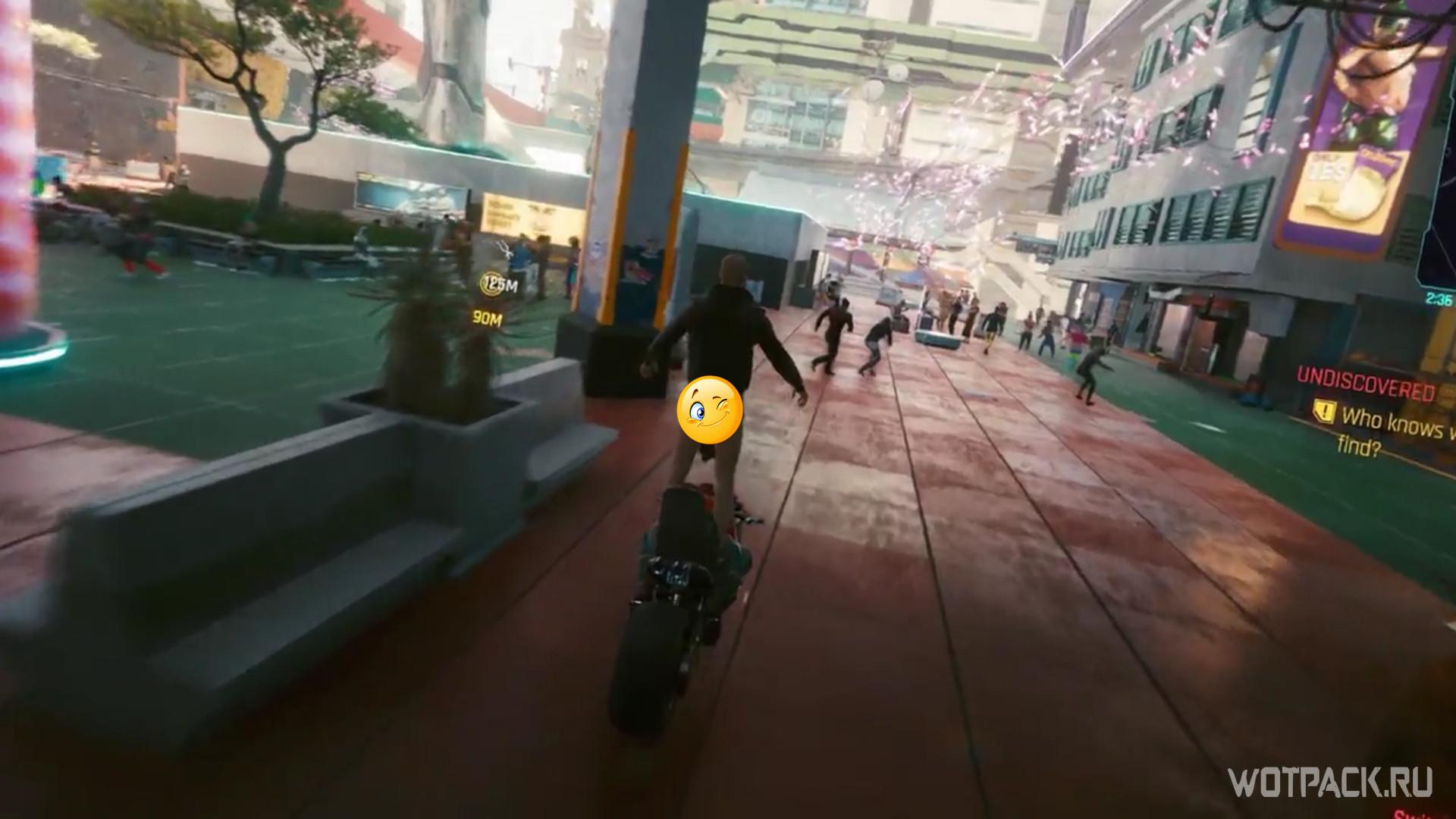 Если с багами, которые связан с неигровыми персонажами еще можно смириться, если они, конечно, не портят прохождение полностью, то ошибки с главным героем просто раздражают. Оказалось, что в Найт-Сити возможно все, даже стать частью торгового автомата. Достаточно просто въехать в него на мотоцикле – и главный герой просто заберется в него сквозь текстуры.