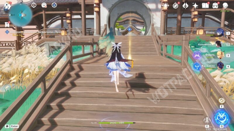 Приступив к выполнению целей миссии День увековечивания храма, взаимодействуйте с энергетическим потоком на мосту — так отправитесь в Академию Луян, ставшую центром искусства и живописи, и обновите активную задачу в «Журнале».