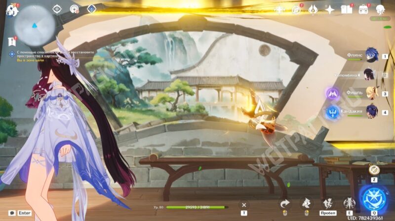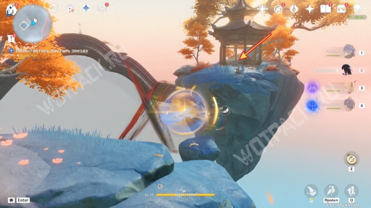 Как только заберёте последнюю картину, Даоцзы восстановит вход в зону с тусклой звездой. Совершите переход и, схватившись за «Прорыв сквозь кокон», доберитесь до беседки с богатым ящиком.