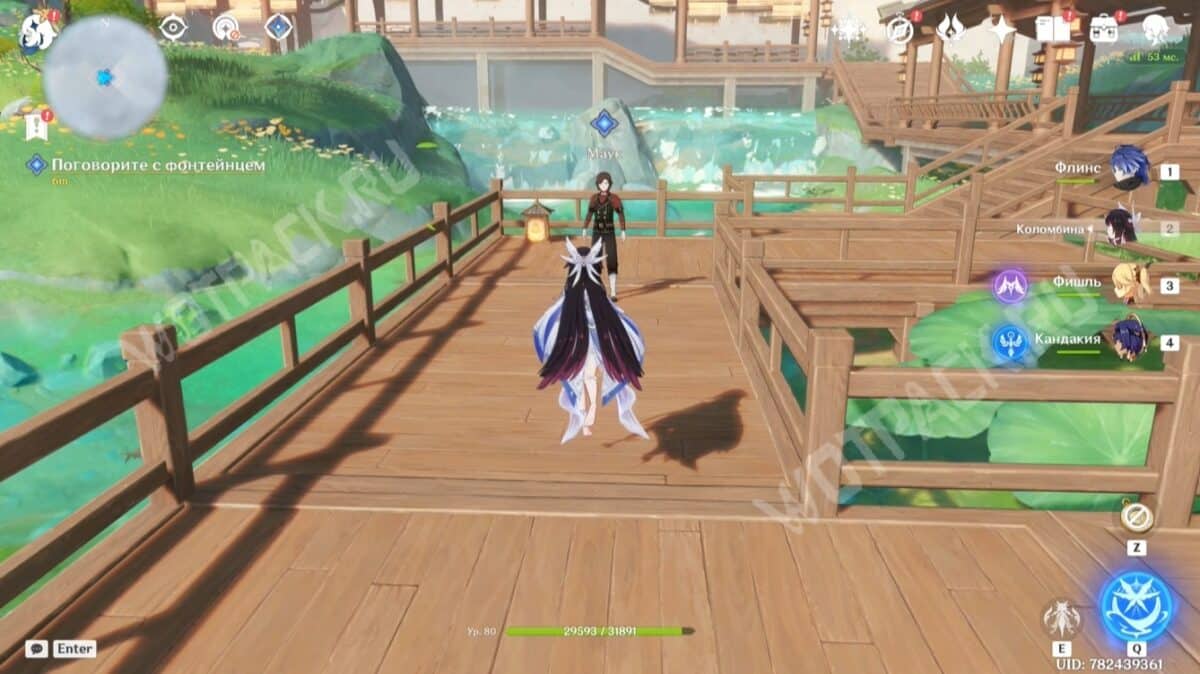 Забрав вознаграждение, поговорите с фонтейнцем. Мужчина представится Мауком и попросит проследовать за ним в безопасное место.