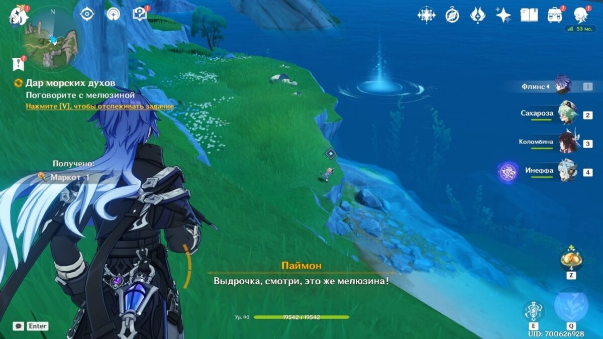 Выбирайтесь на берег и узнайте, что произошло. Застав мелюзину в компании вишапа, пообщайтесь с ней. Выяснится, что на неё напал бронекраб, но морской дракон вовремя вмешался и спас Пуки.