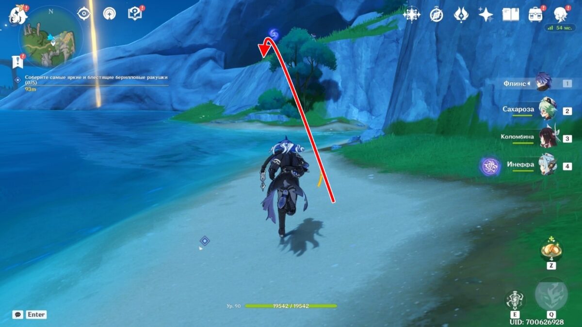 Отправляйтесь на побережье района Берилл, к северо-востоку от горы Элинас. Прибыв на место, увидите мелюзину, что-то высматривающую в воде. Поговорите с ней и узнаете, что она ищет берилловые ракушки для создания краски к подарку для юдекса.