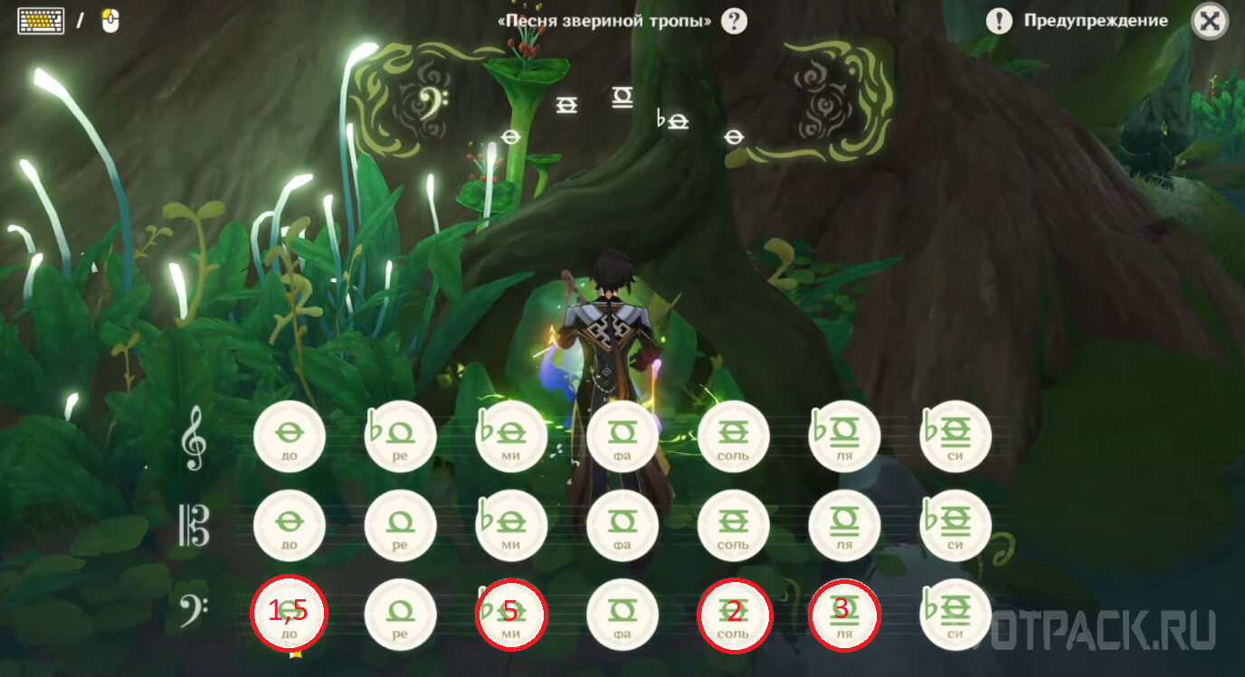 Развернитесь и идите мимо Дендрогранумов, поверните направо и подойдите к стене. Справа от нее под деревцем расположен Клаустроцвет. Рядом с ним на Старинной лире сыграйте Песню звериной тропы: до, соль, ля, ми, до на нижней строке. Получить мелодию можно в квесте Песня, открывающая звериную тропу.