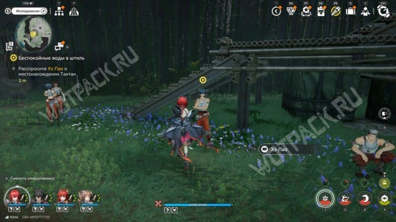 Чтобы встретиться с предводительницей, вернитесь в окрестности Циньбо на равнину Небесного Царя и поговорите с Хэ Лао. Мужчина подскажет, что в деревне есть люди, которые могли её видеть.
