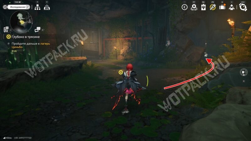 Вместе с Ми Фу продвигайтесь по секретной запечатанной пещере, куда уже проникли Землекрушители. Подслушайте их разговор и продолжайте путь к лагерю Циньбо.