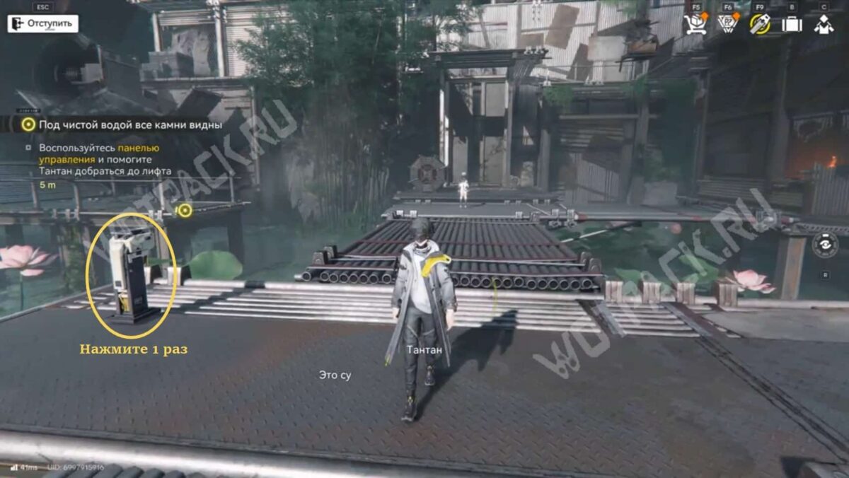 Так приведёте лифт в действие, что позволит Тантан подняться на второй ярус зоны.