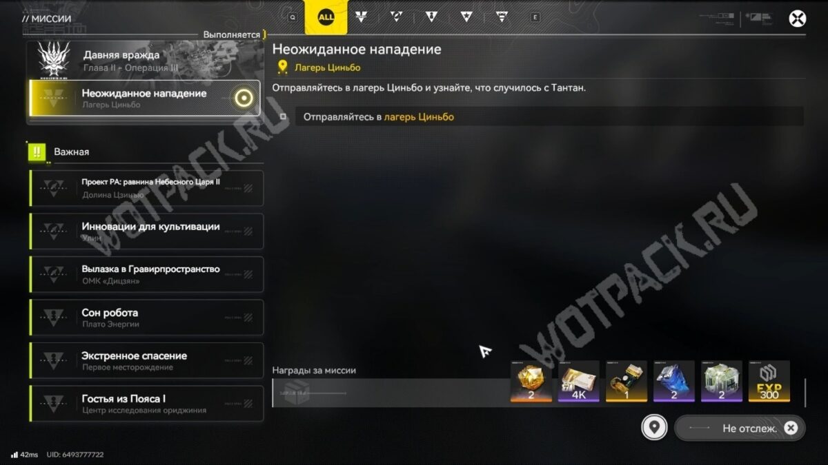 Задание запустится автоматически после прохождения операции 2 главы 2 «Путь воды». Включите отслеживание в журнале миссий и отправляйтесь в лагерь Циньбо.