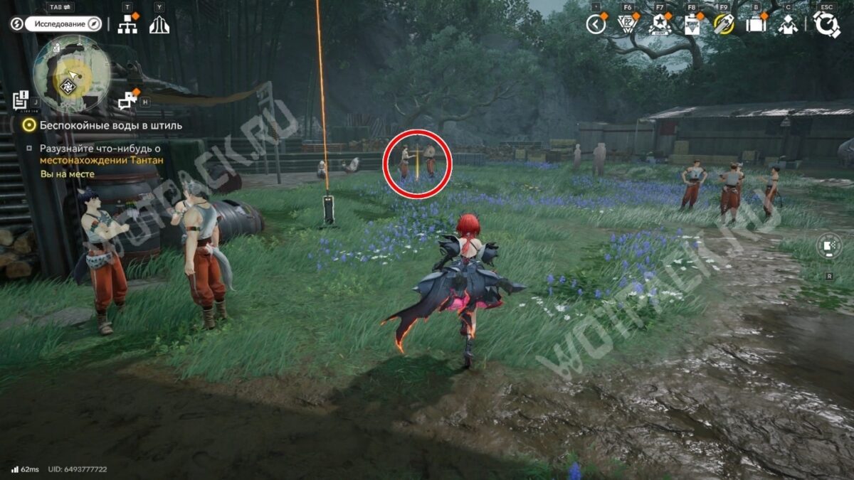 Подслушайте разговор двух поселенцев. Они проговорятся, что девушка отправилась к водяному колесу. Следуйте за квестовым маркером, который выведет к Тантан.