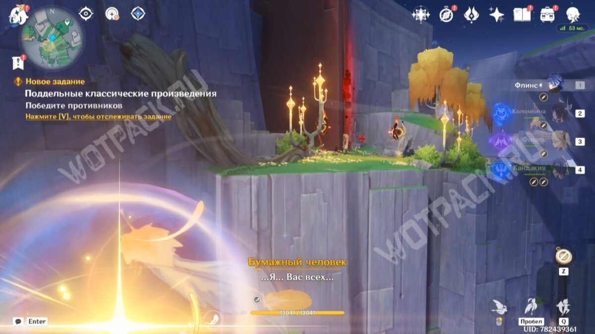 Многие попали в ловушку среди страниц в западной стороне поднебесья. Используя особенность местности «Прорыв сквозь кокон», доберитесь до входа в Зал Махавайпулья и выручите бумажного человека, окружённого Хранителями измерения.
