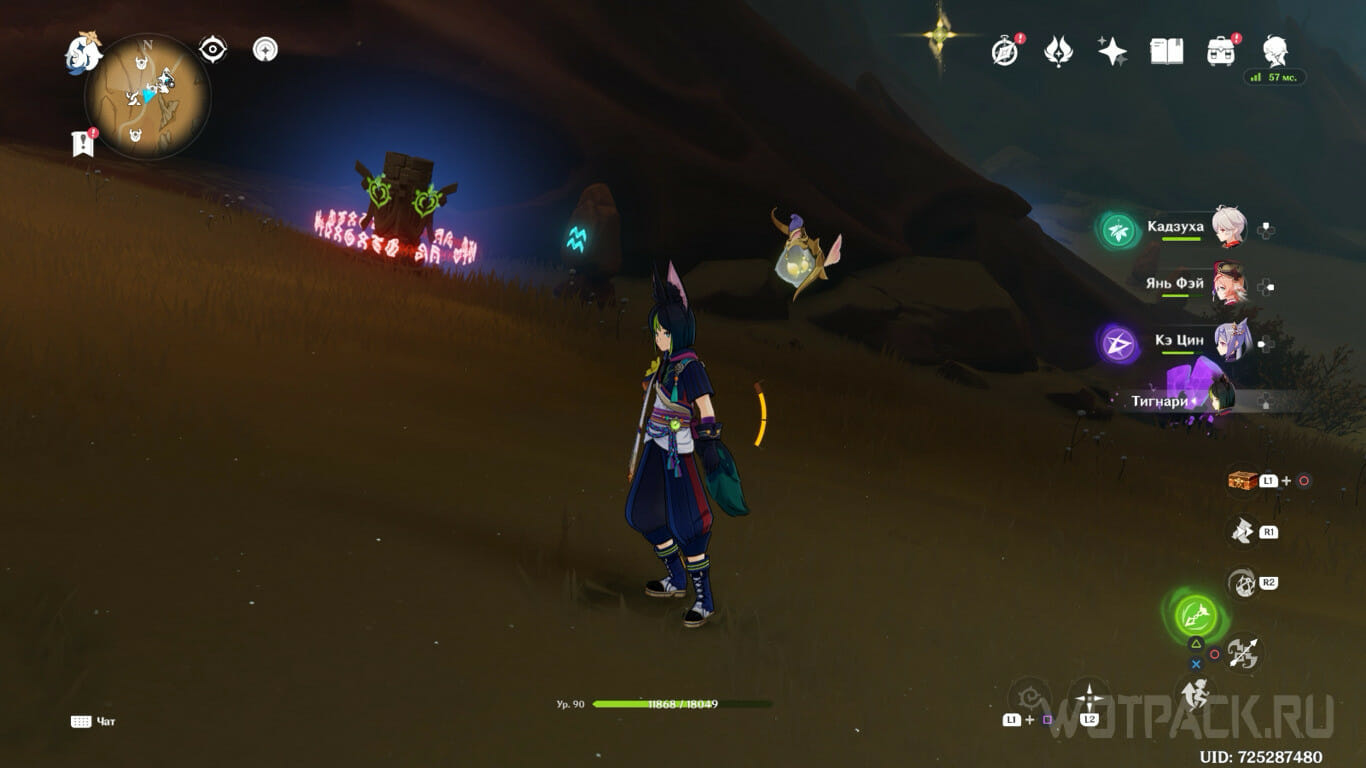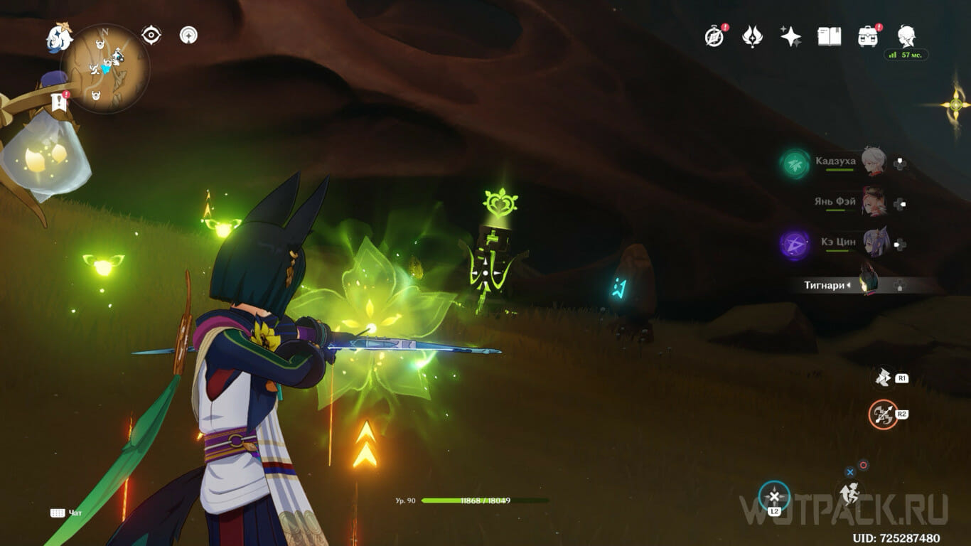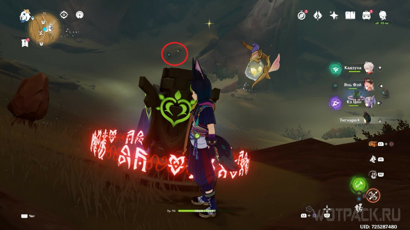 В первую очередь необходимо активировать монумент с одним Обветшавшим обелиском рядом. Образец с верным символом находится у противоположной стенки пещеры. Барьер спадет после того, как выставите требуемое изображение, а далее нужно воздействовать на него Дендро элементом.