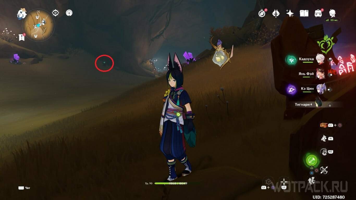 Загадка с Дендро монументами и Обветшавшими обелисками находится в подземной области запада пустыни Хадрамавет. Добраться к ней получится от данжа Город погибших, если двигаться в проход слева, а затем спрыгнуть в отверстие в земле и спланировать на дно пещеры.