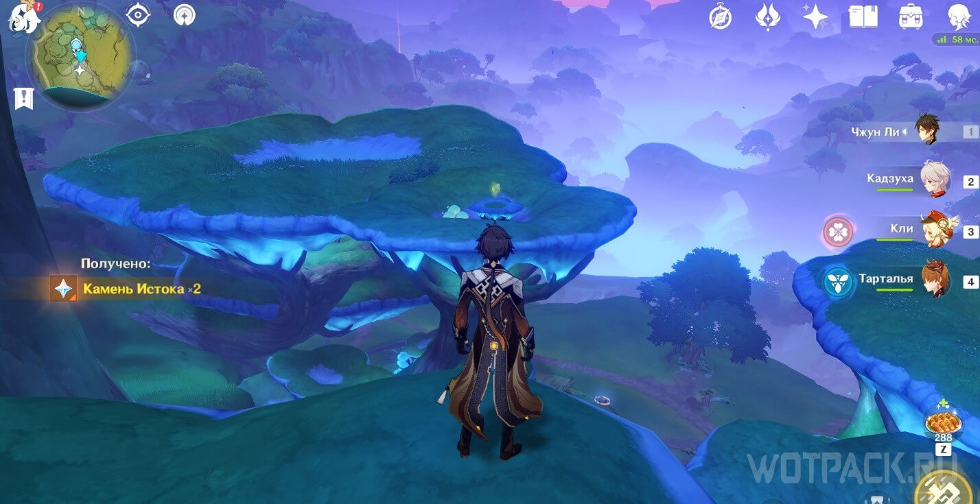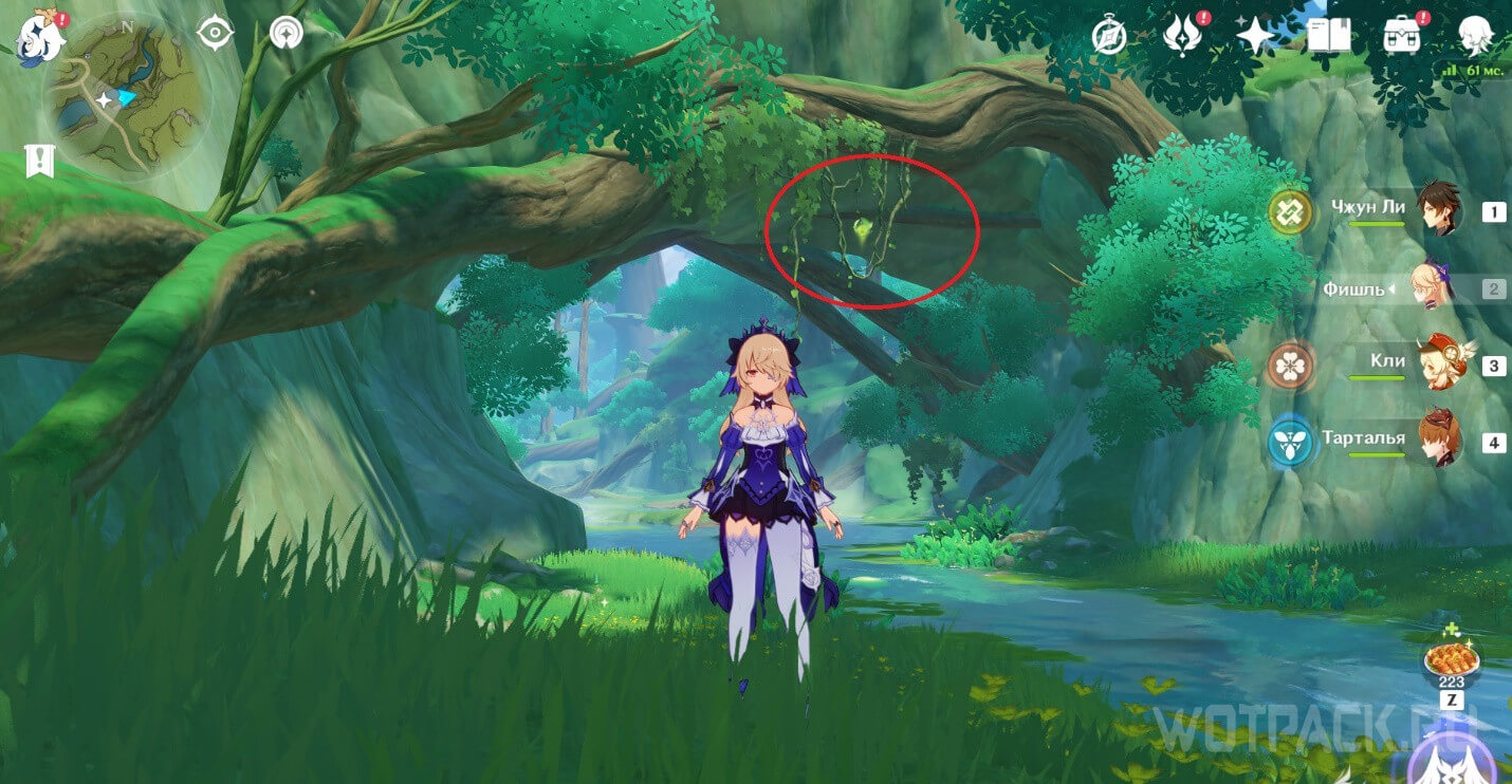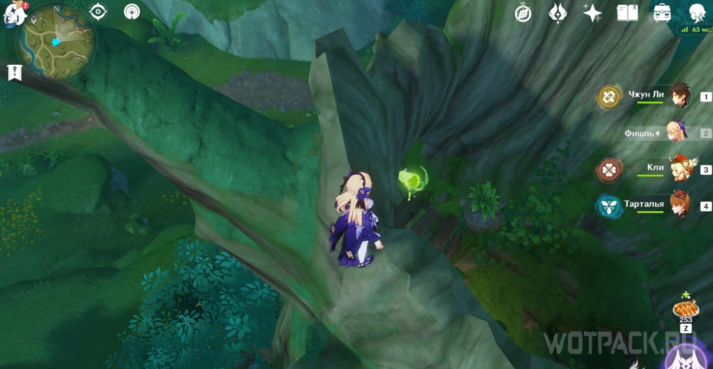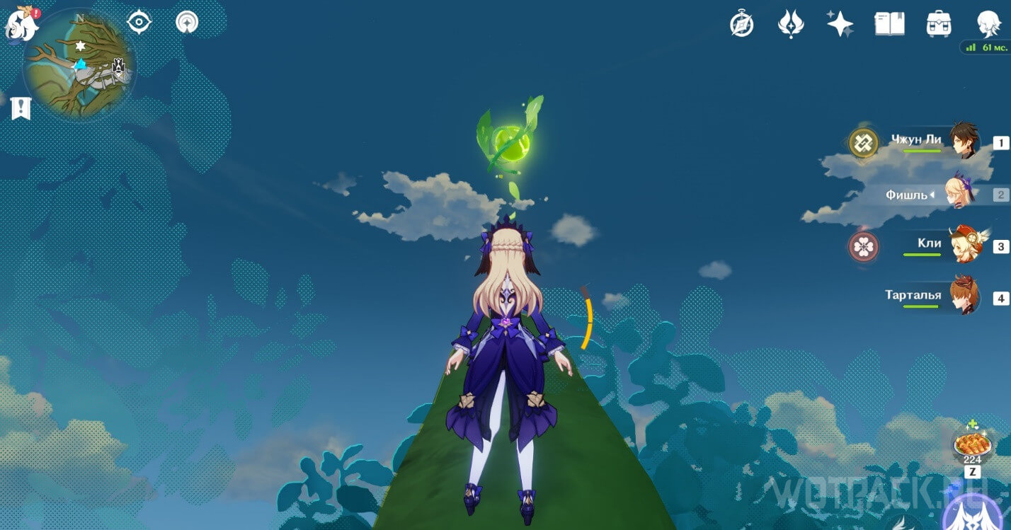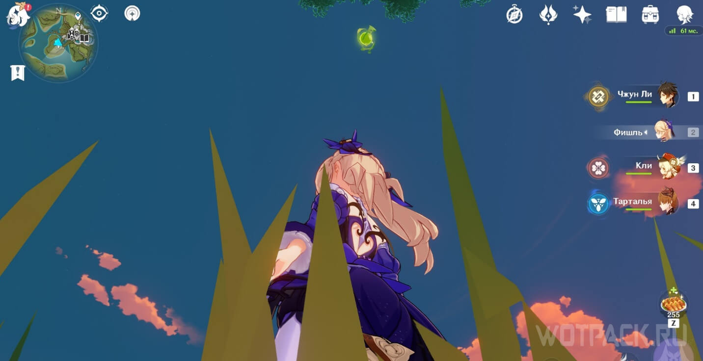 Высоко в воздухе. Поднимитесь наверх по четырехлистным символам, как по громовым сферам из Инадзумы. Скорости подъема будет достаточно, чтобы забрать добычу. Для высокого прыжка используйте пружинистые грибы, предварительно усиленные Электро.