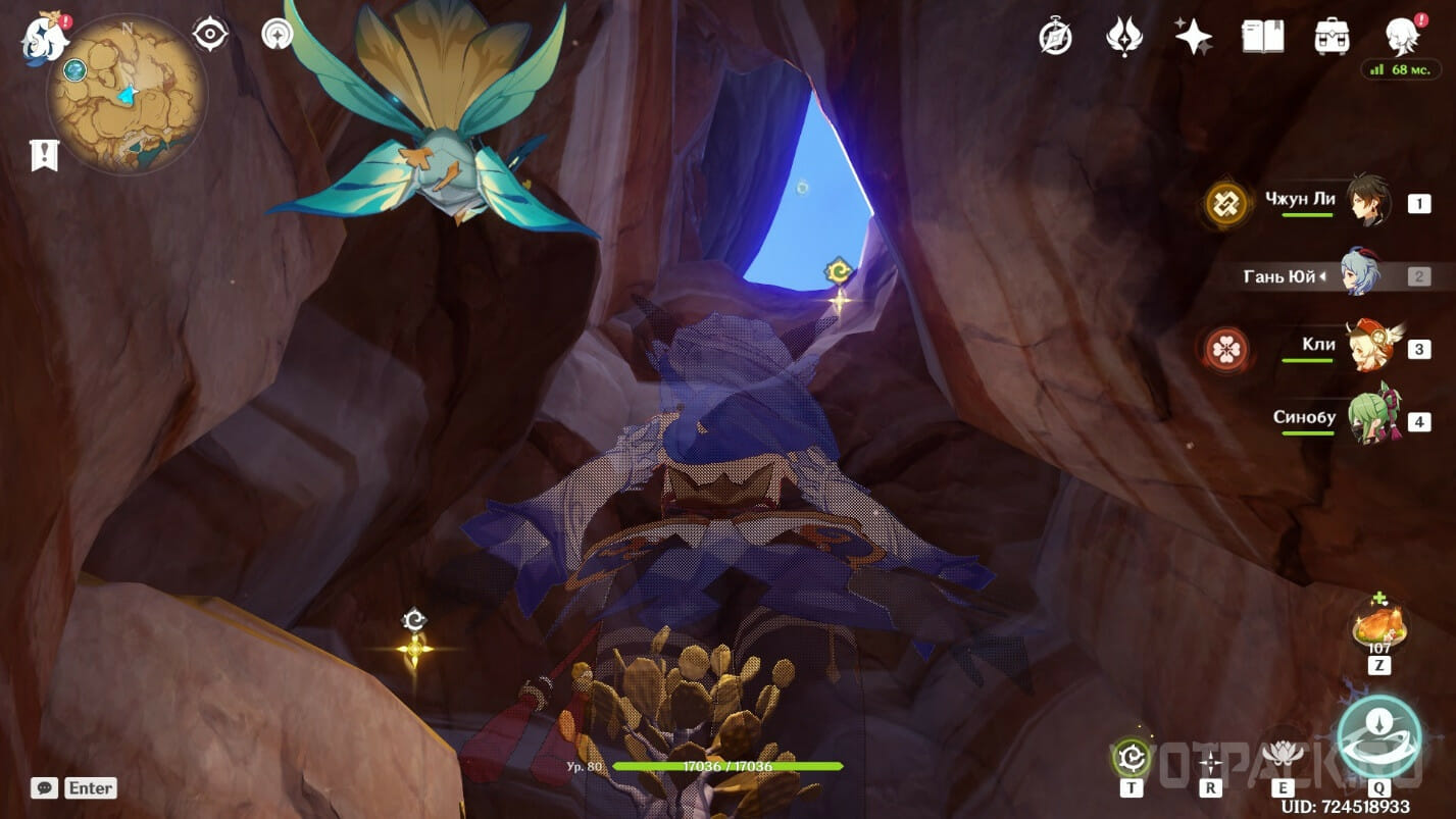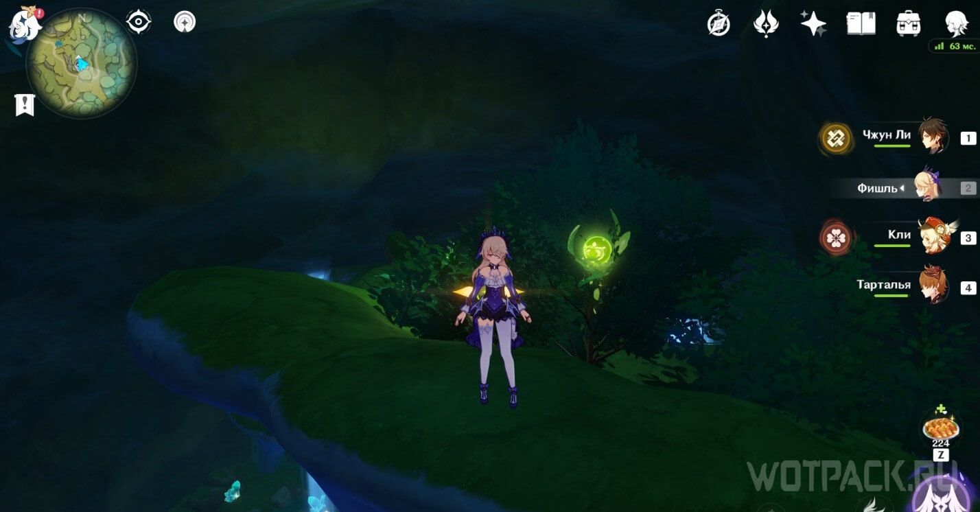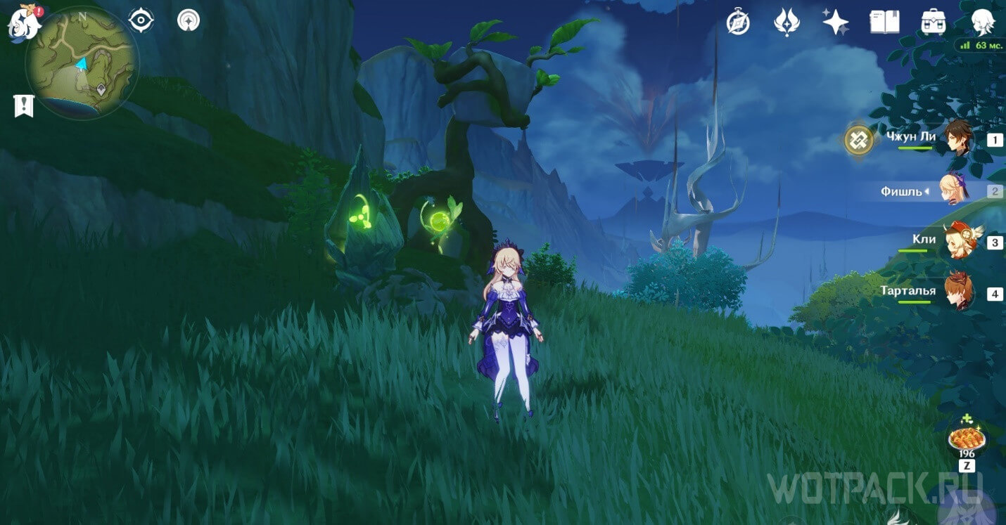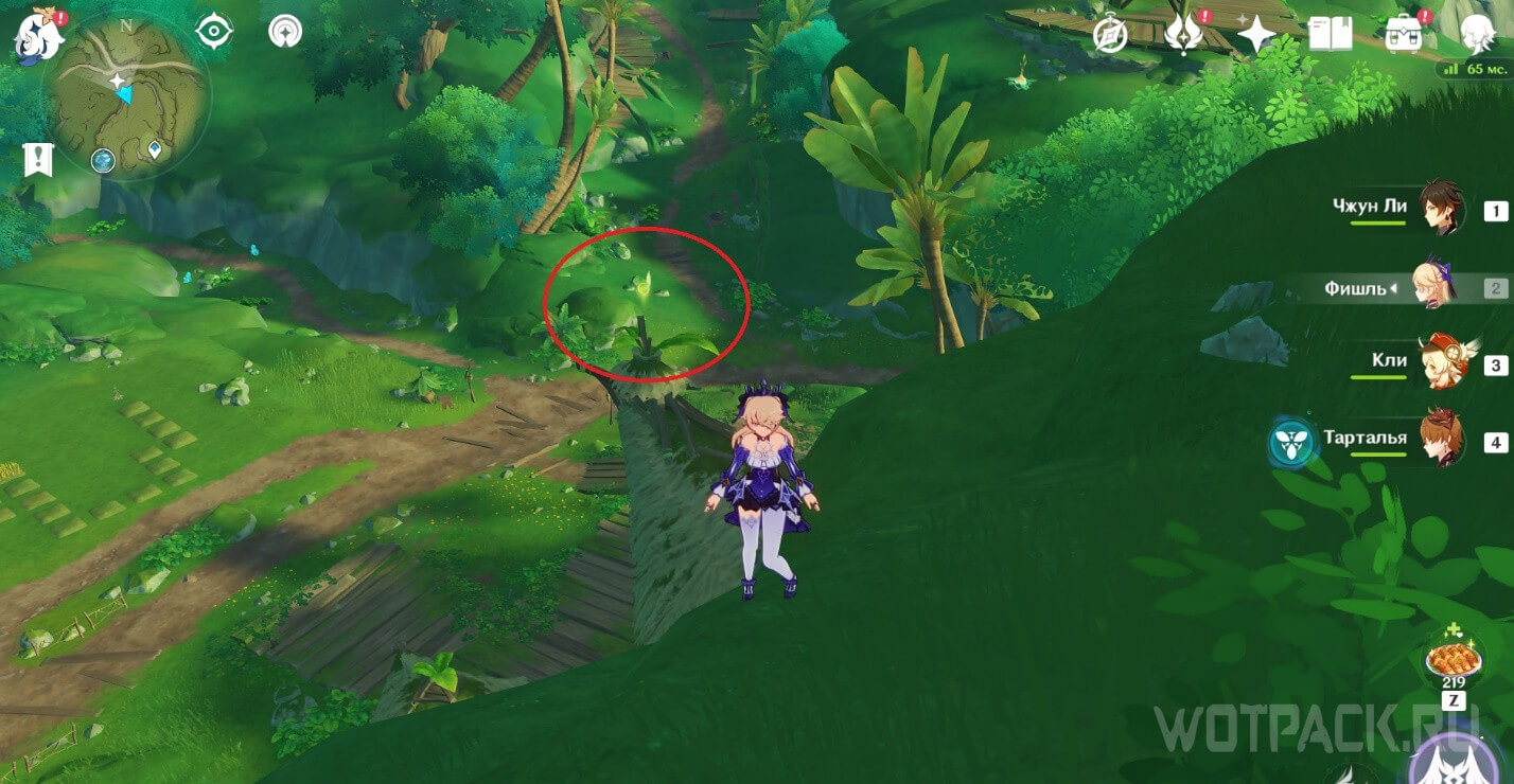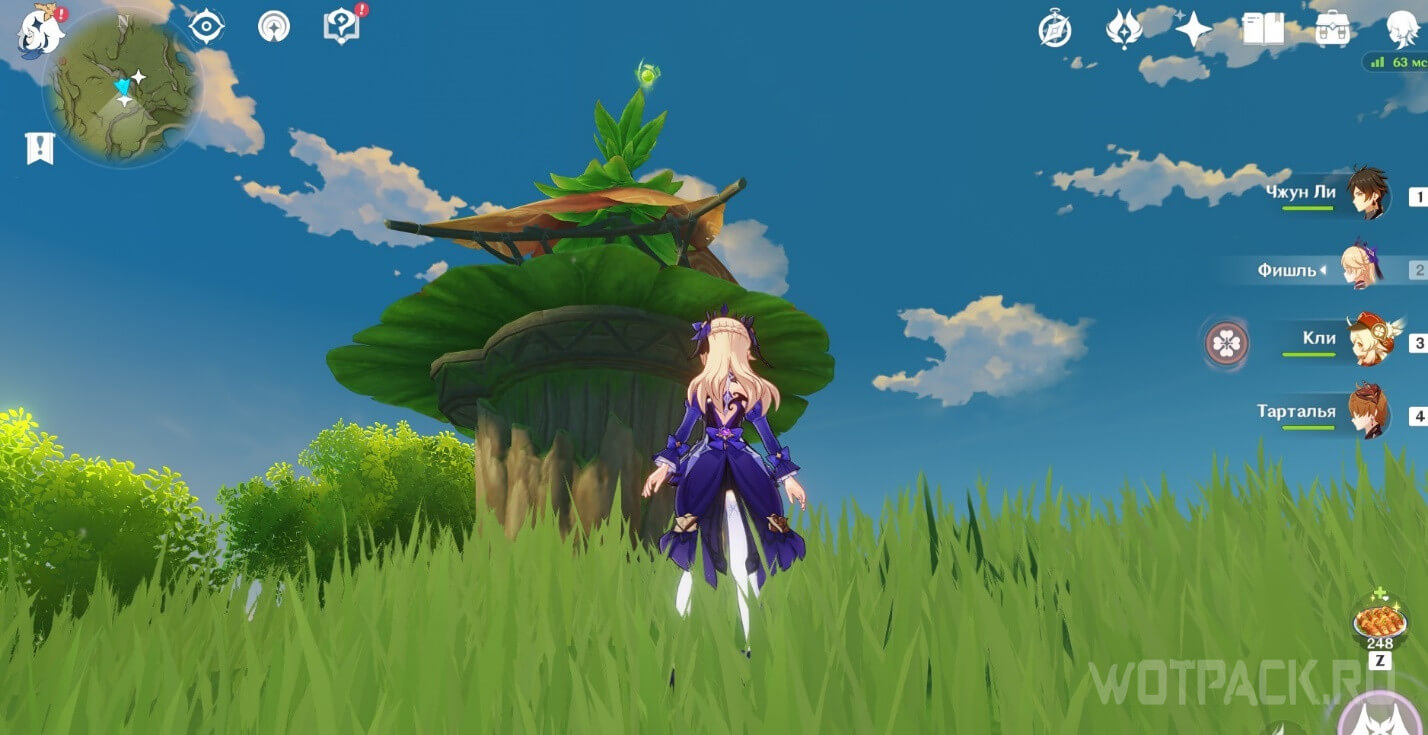 Высоко в воздухе. Поднимитесь наверх по четырехлистным символам, как по громовым сферам из Инадзумы. Скорости подъема будет достаточно, чтобы забрать добычу. Для высокого прыжка используйте пружинистые грибы, предварительно усиленные Электро.