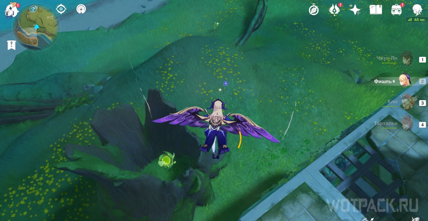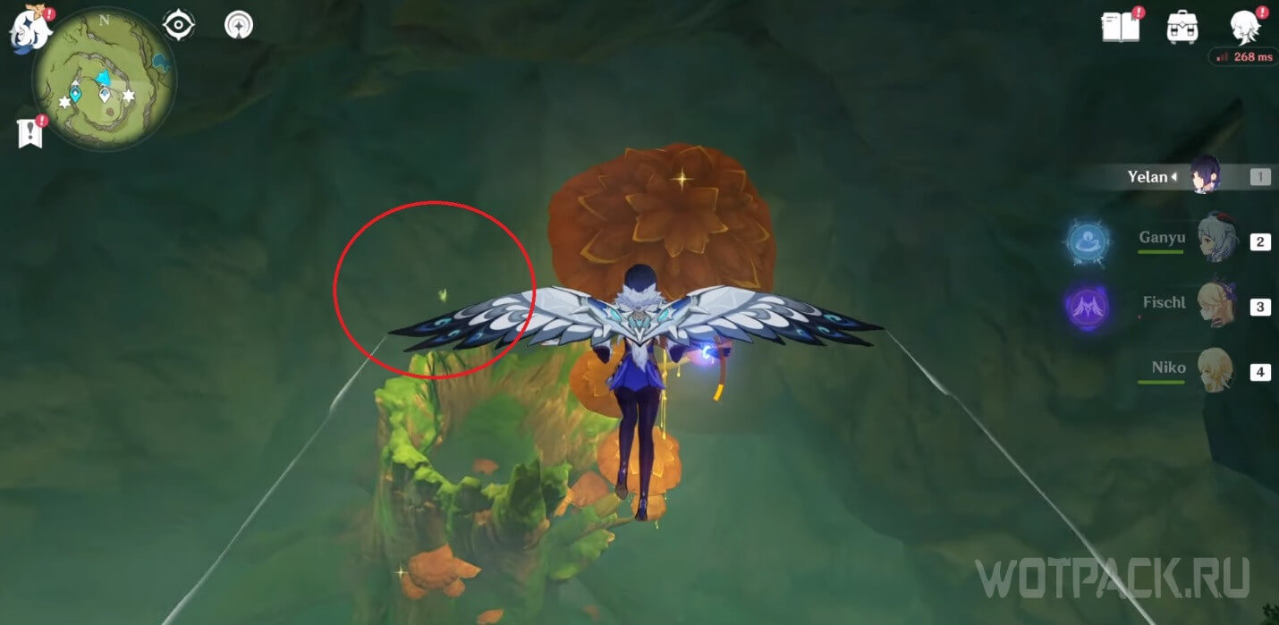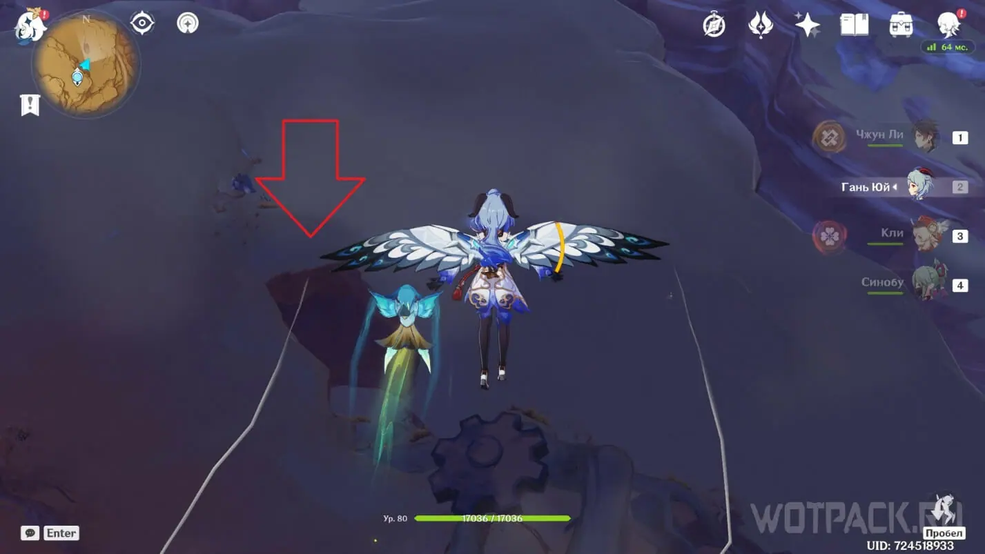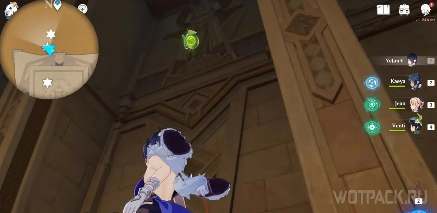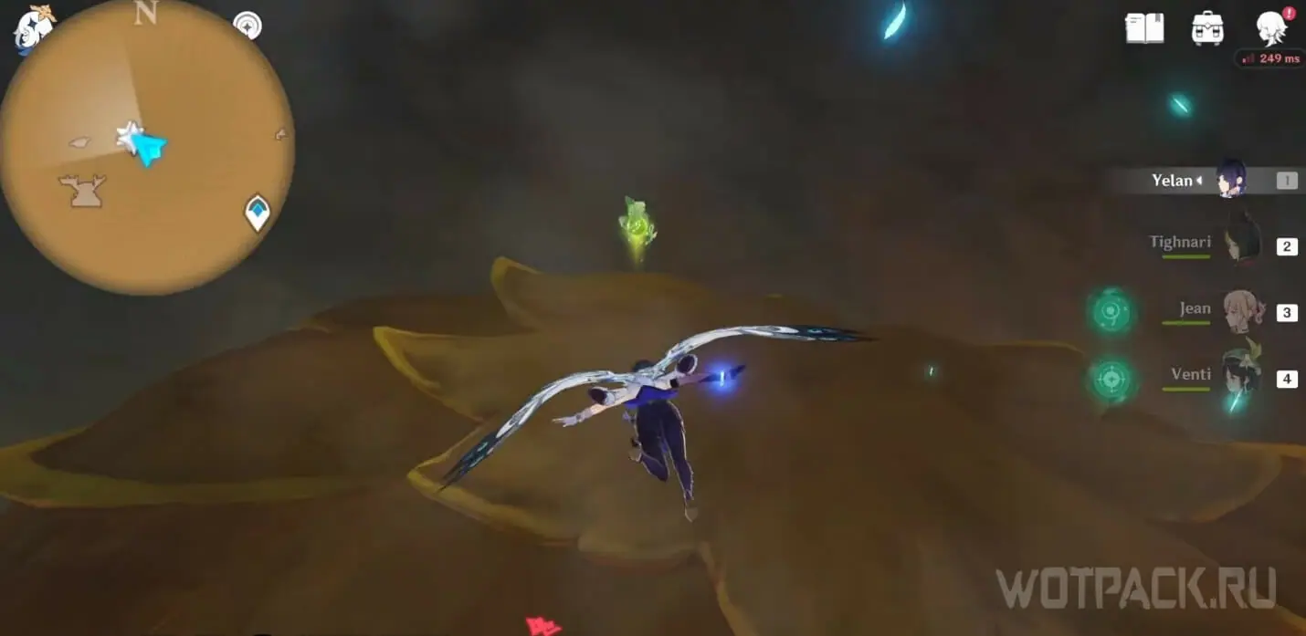 - Активируйте ветряной поток на земле прямо под окулусом (рядом с группой анемо-слаймов).