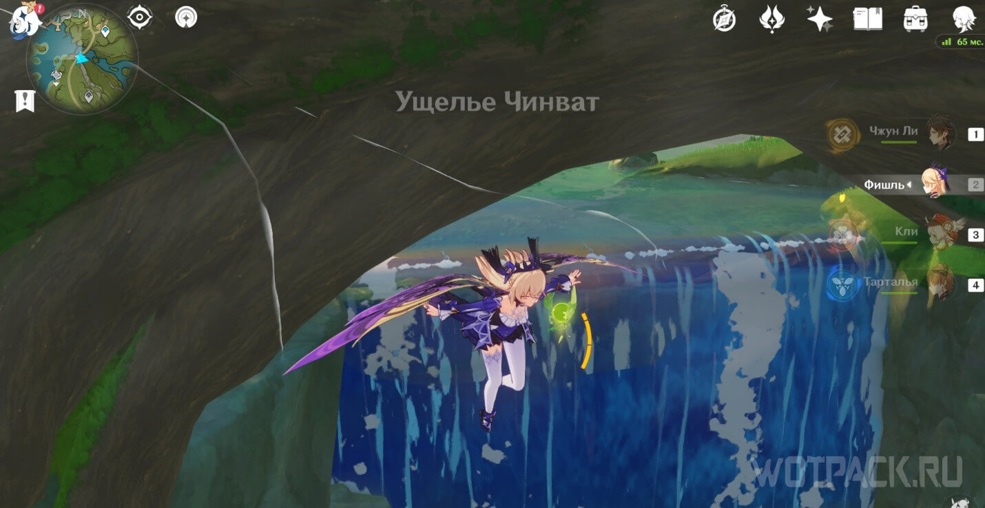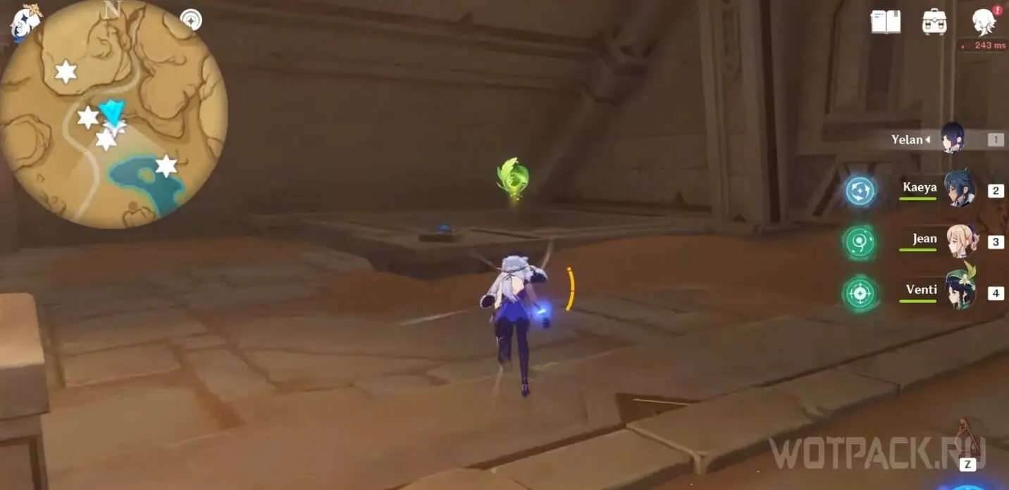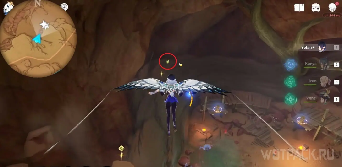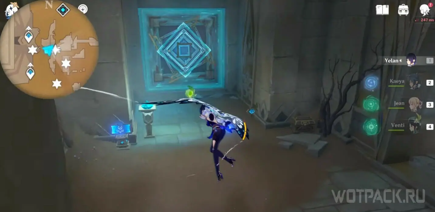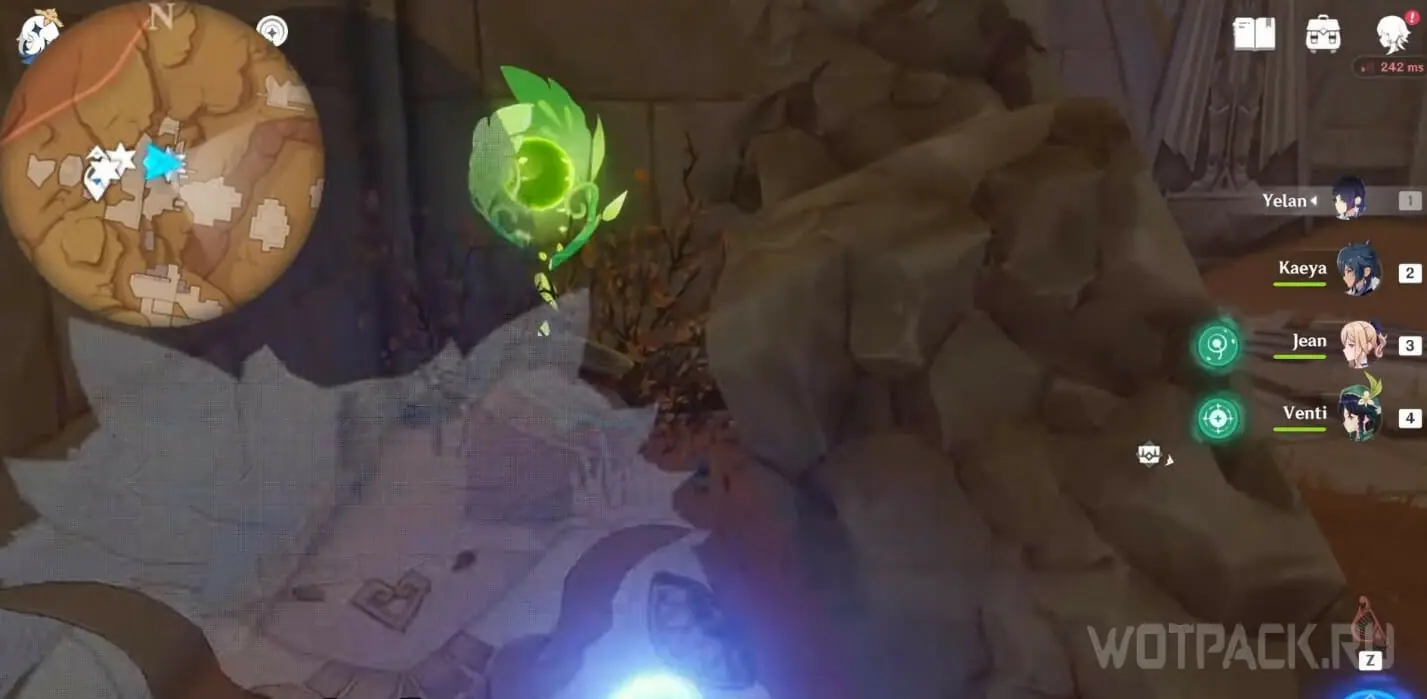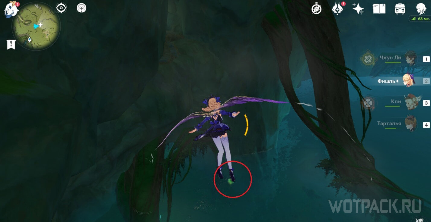 - Активируйте ветряной поток на земле прямо под окулусом (рядом с группой анемо-слаймов).