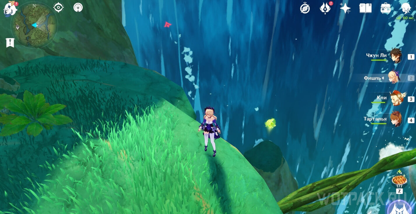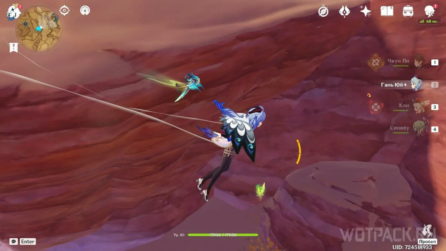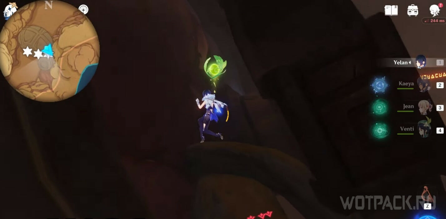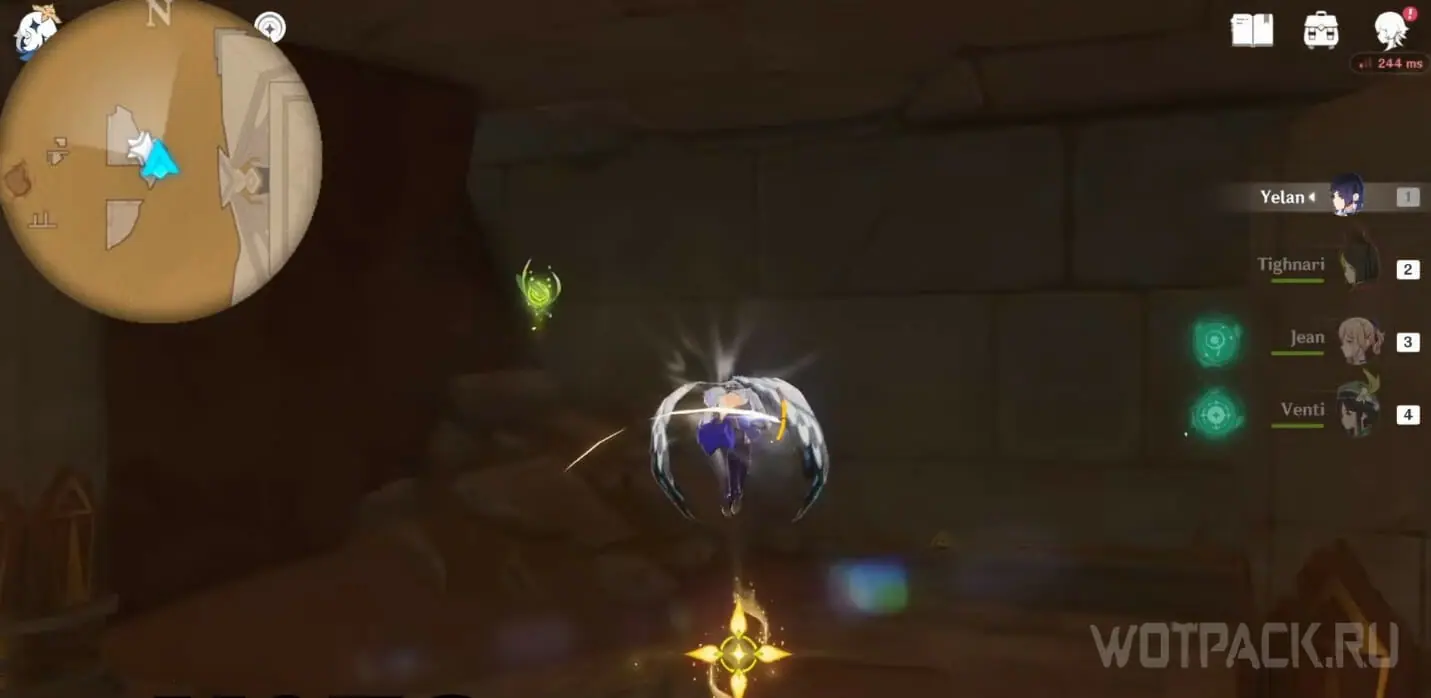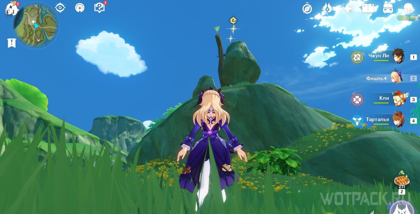- Активируйте ветряной поток на земле прямо под окулусом (рядом с группой анемо-слаймов).