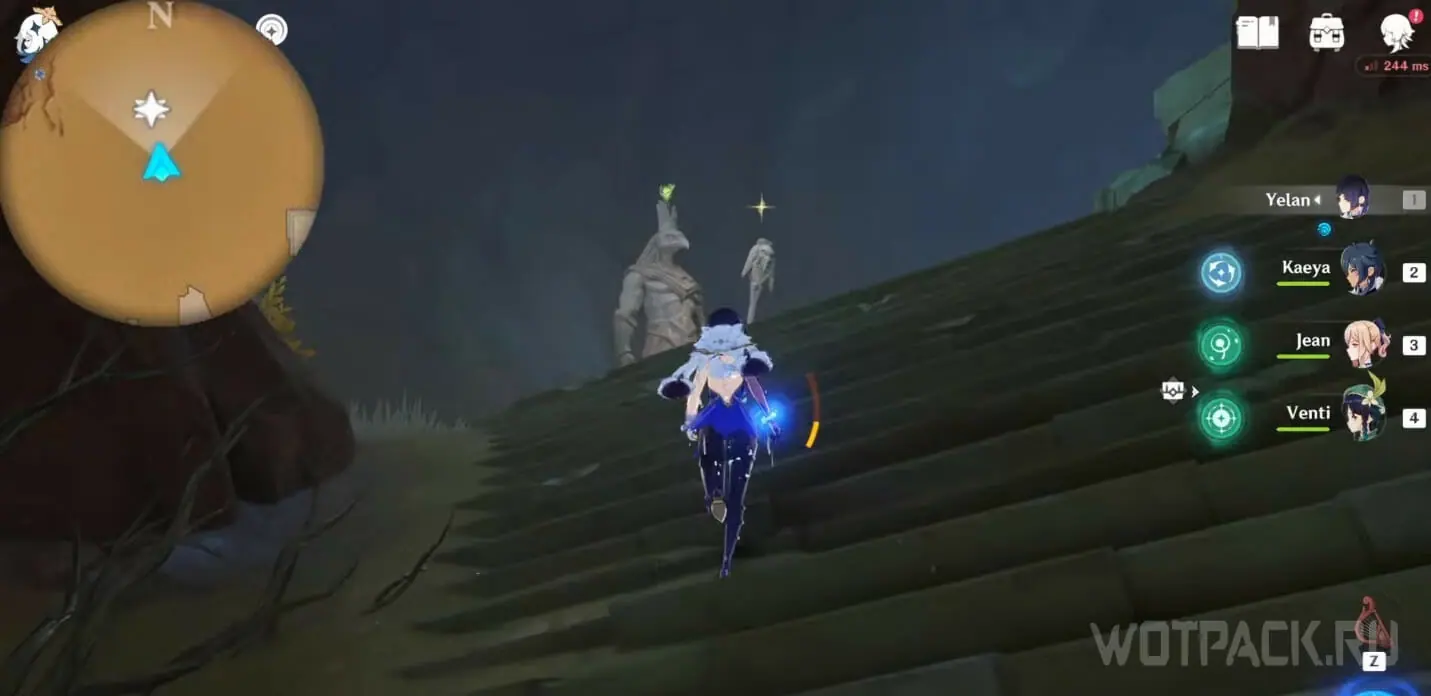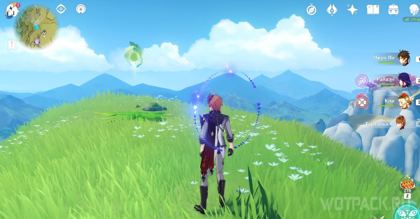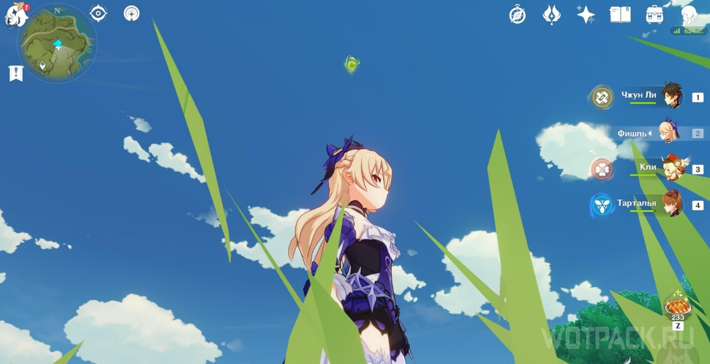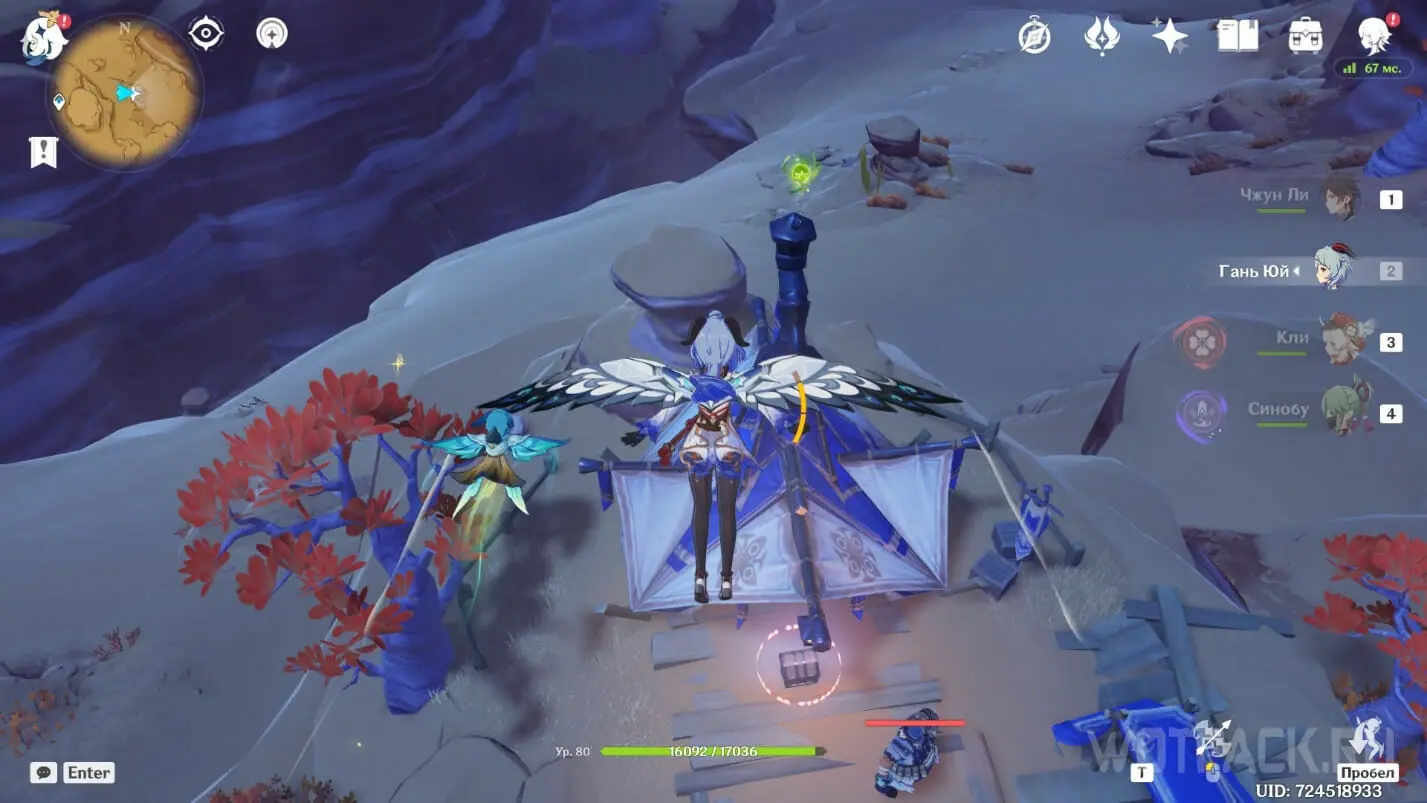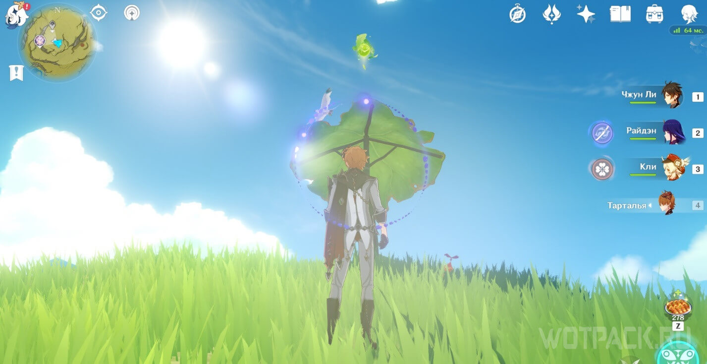 - Активируйте ветряной поток на земле прямо под окулусом (рядом с группой анемо-слаймов).