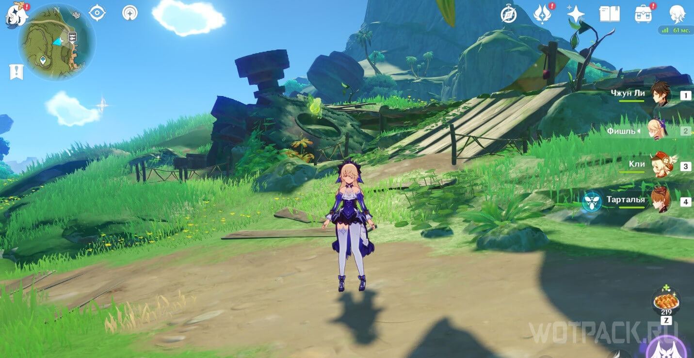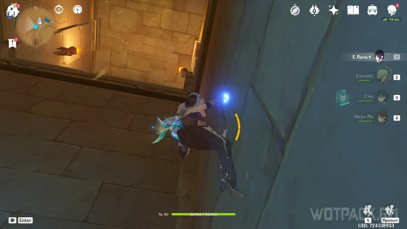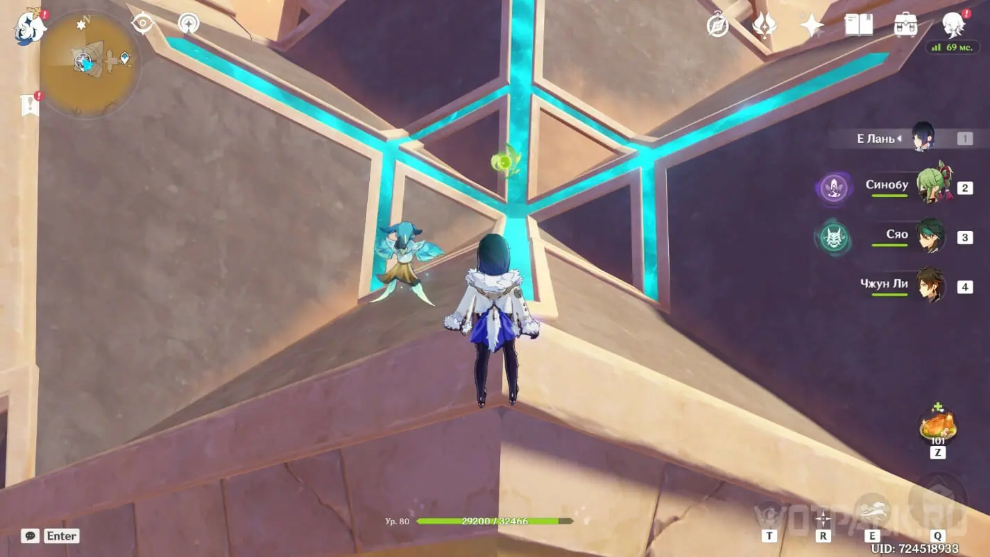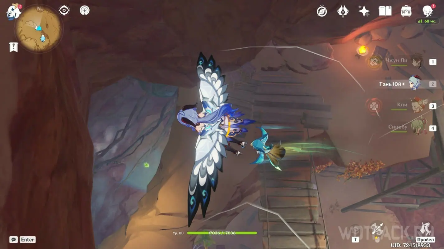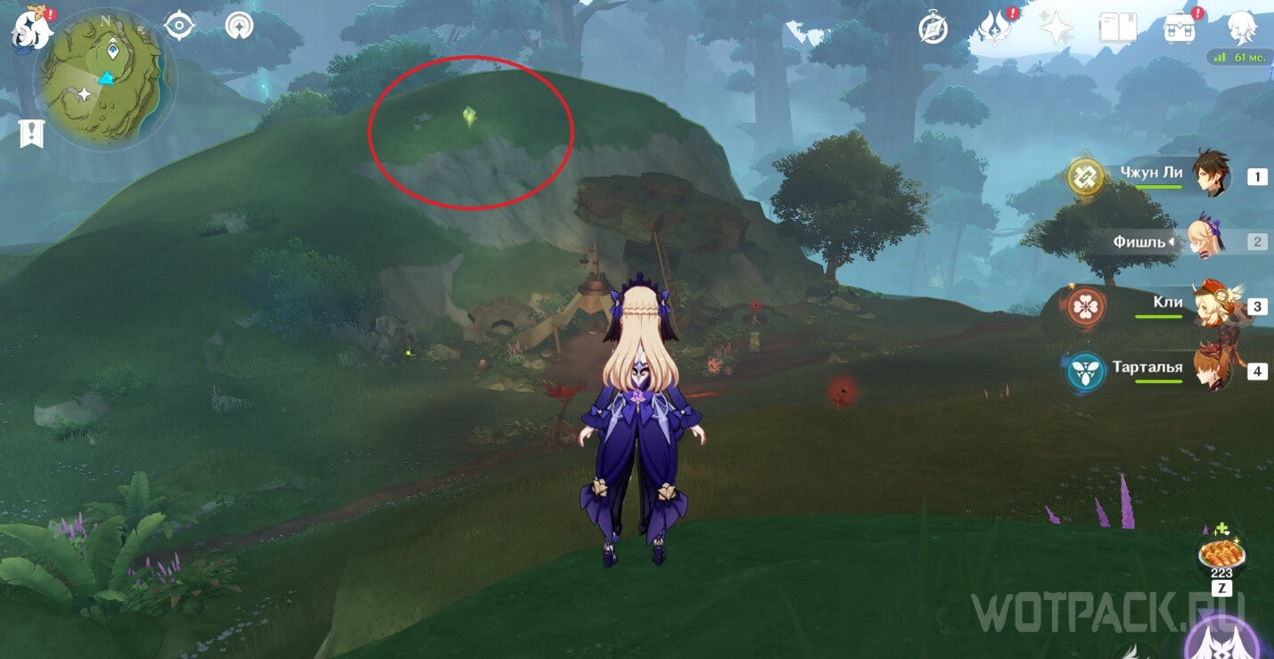 - Активируйте ветряной поток на земле прямо под окулусом (рядом с группой анемо-слаймов).