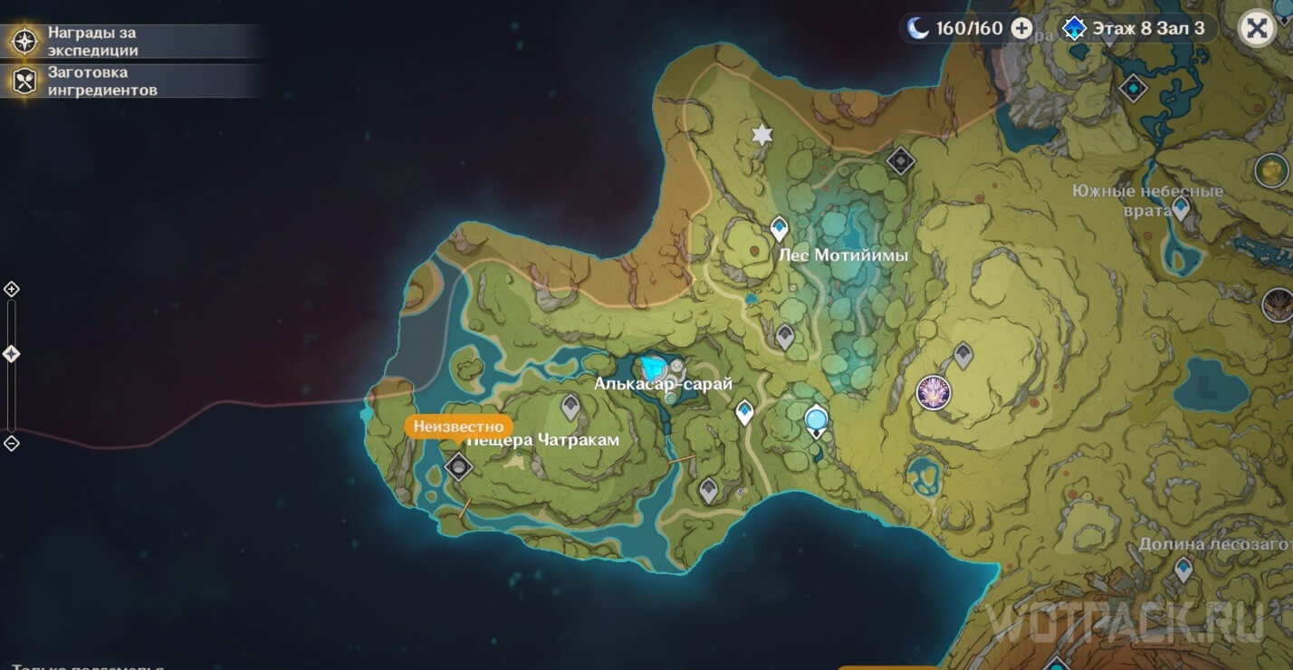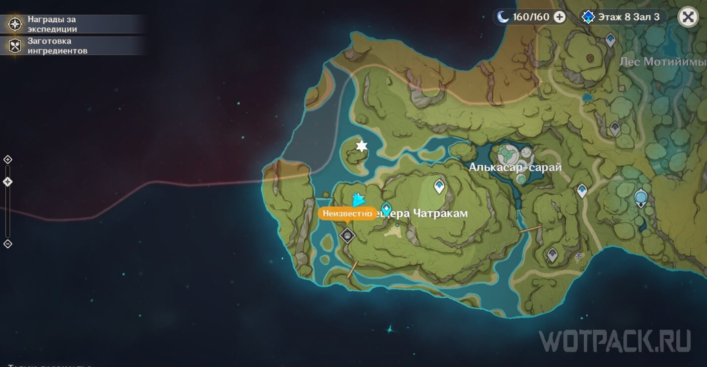 Находится под корнями на островке в озере, к западу от Алькасар-сарая. Пройти сквозь преграду нельзя из-за прозрачного барьера. Снять его получится в ходе прохождения задания мира Восходящая луна.