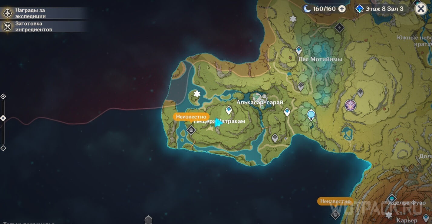 Находится в одной из пещер Ханг-е Афрасиаб. Удобнее всего его забрать по квесту «Величественное небо того дня». Двигайтесь по пещере от подземного телепорта на восток, пока не увидите хиличурла, роющего землю. Разрушьте кучу камней, за которой прячется энергия Хварны.