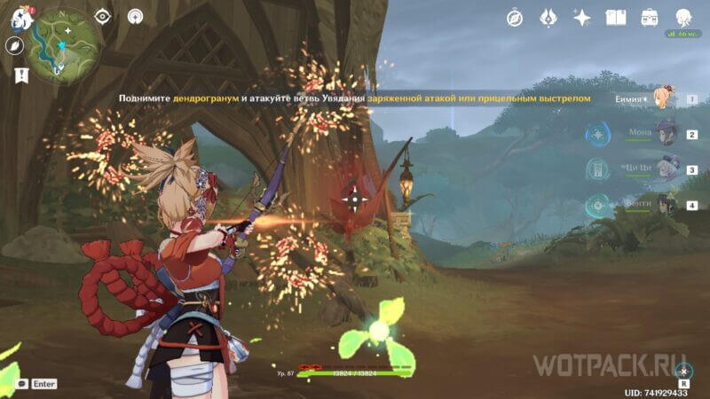 Для того чтобы разрушить ветви Увядания, возьмите Дендрогранумы, находящиеся неподалеку. При помощи заряженных атак или прицельного выстрела атакуйте каждую из ветвей. Не забывайте пополнять запас Дендрогранумов, ведь при атаке ветви тратится один гранум.