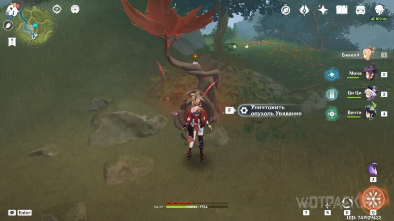 Когда все ветви будут разрушены, активируйте центральную опухоль Увядания нажатием кнопки (по умолчанию F), чтобы уничтожить ее и очистить местность.