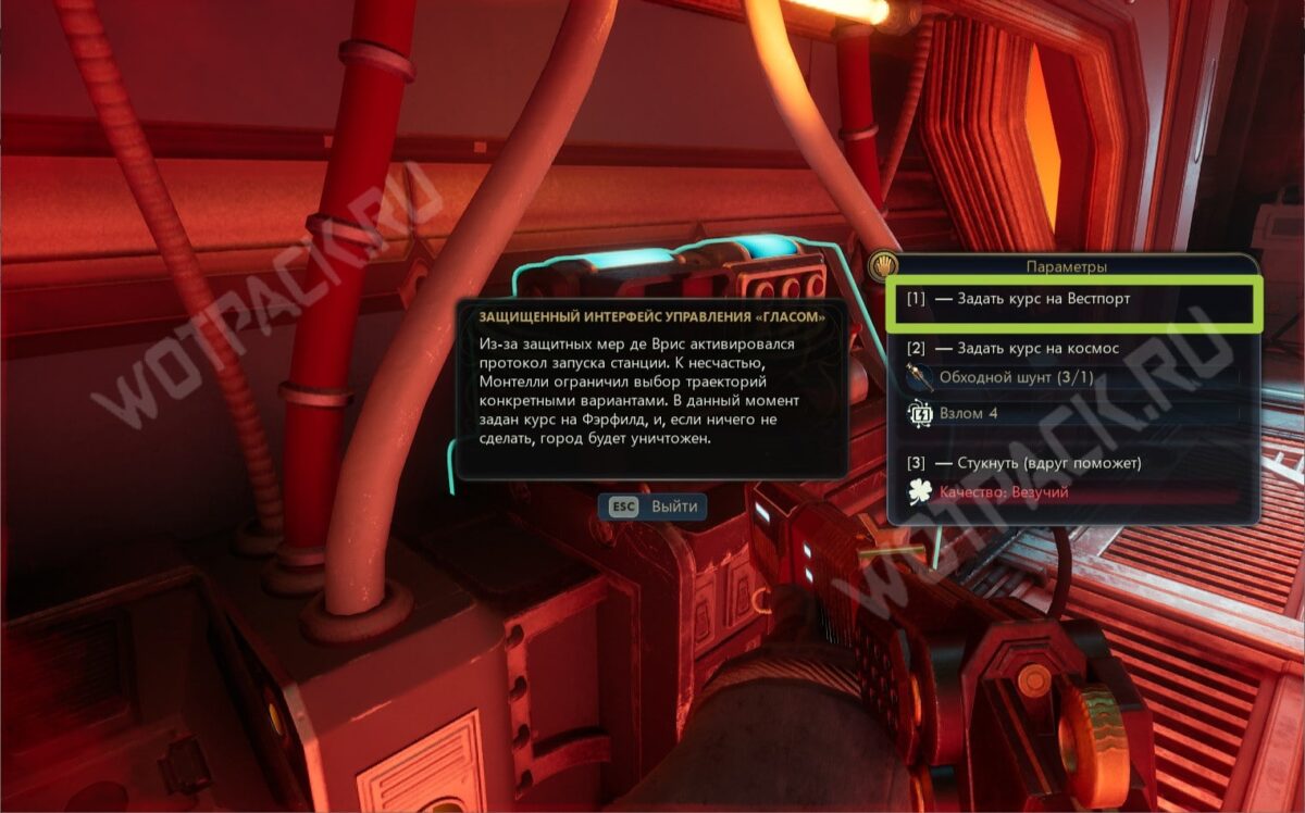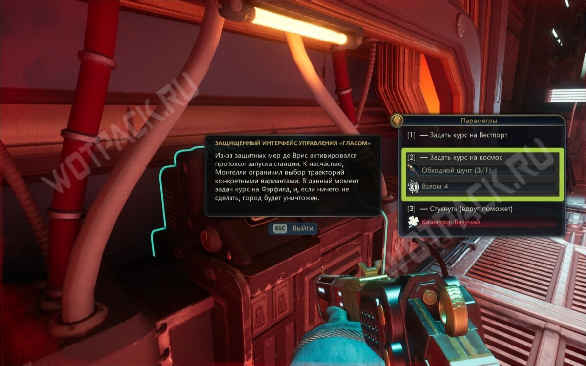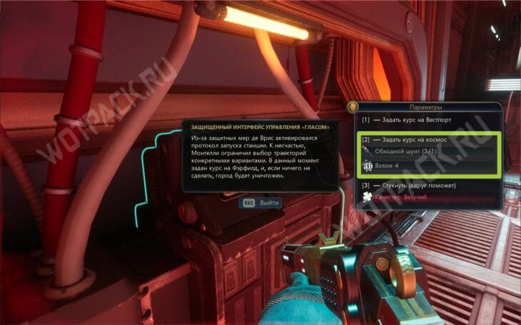 - либо задать курс на космос (Обходной шунт + Взлом 4);