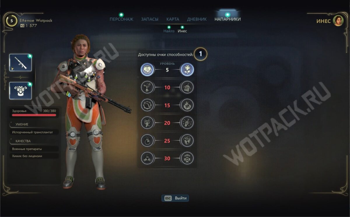 Минус: без охотницы Инес в команде и навыка Взлом 4 или черты «Везучий» заканчиваете квест «Диверсантка в раю» на плохую концовку. |