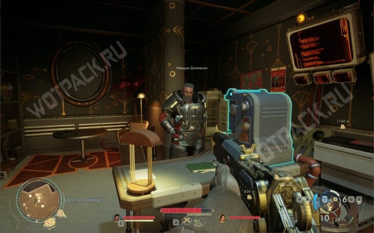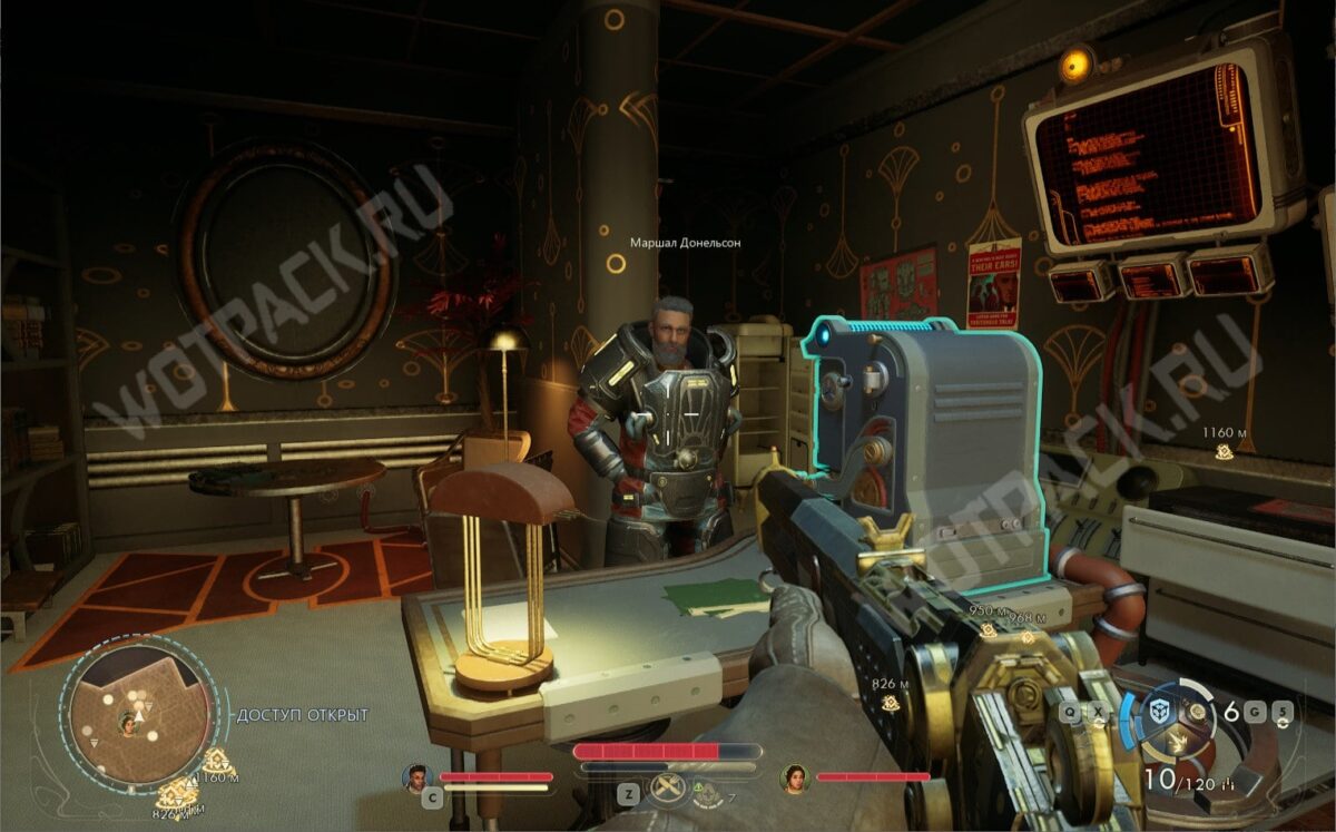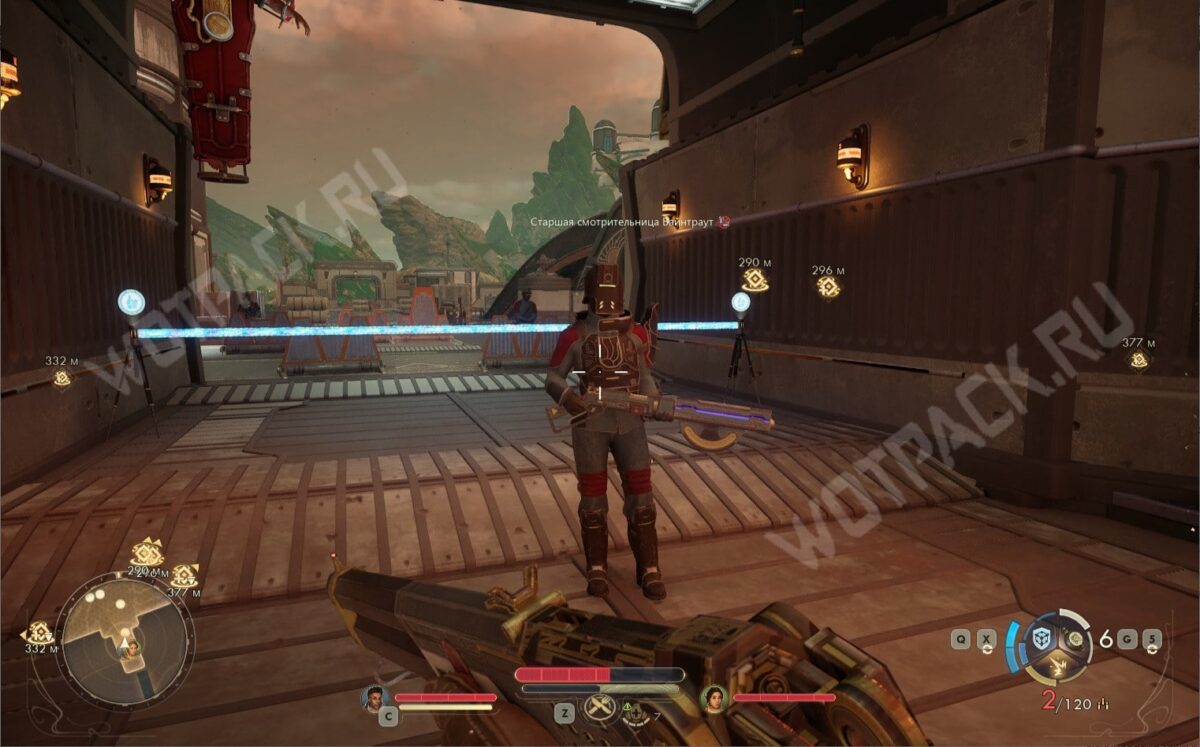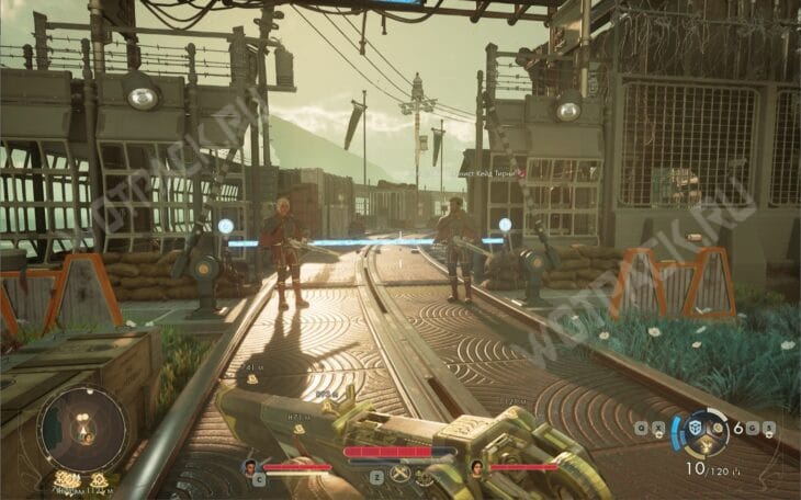 Оказавшись внутри, отправляйтесь в главный штаб и поговорите с маршалом, который расскажет о зирании. Согласитесь помочь с решением проблемы за вознаграждение, после чего будете направлены к главной изобретательнице Брайант.