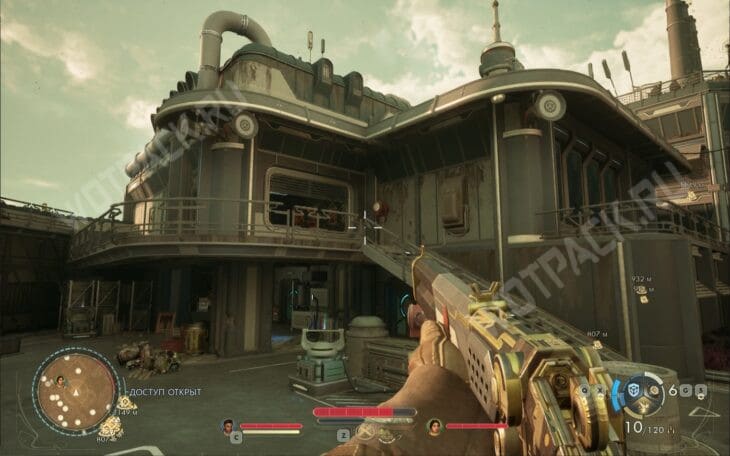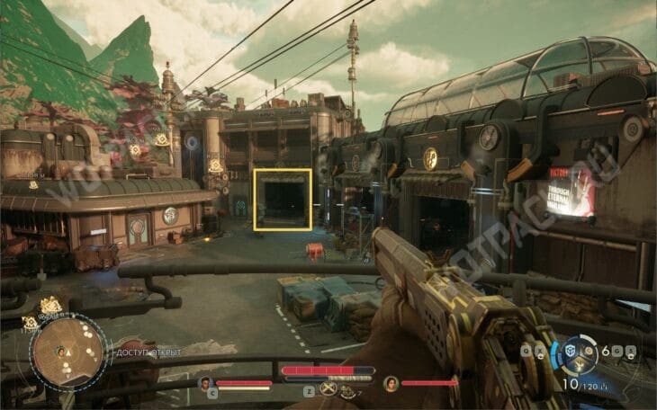 Добравшись до главного входа, можете либо воспользоваться мирным путём по заходу на территорию, либо продолжить штурмовать объект.