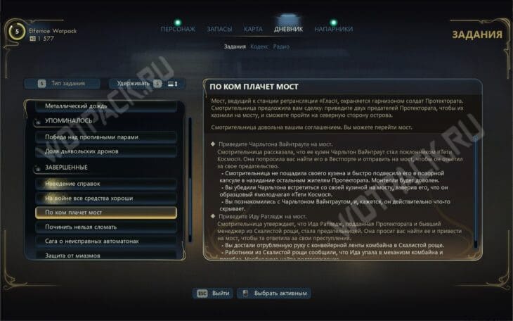 Последний доступный вариант — прямая дорога через Мост Смирения. При первом посещении территории столкнётесь со старшей смотрительницей Вайнтраут. В разговоре согласитесь помочь ей, приняв побочку «По ком плачет мост».